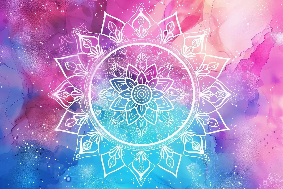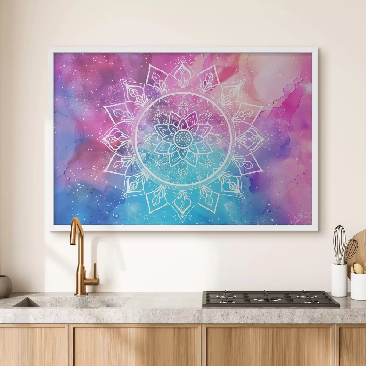 Poster Weißes Mandala auf einem bunten Hintergrund Nr f38529