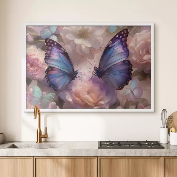 Poster Zwei Schmetterlinge in Blumen im Aquarellstil Nr f38534