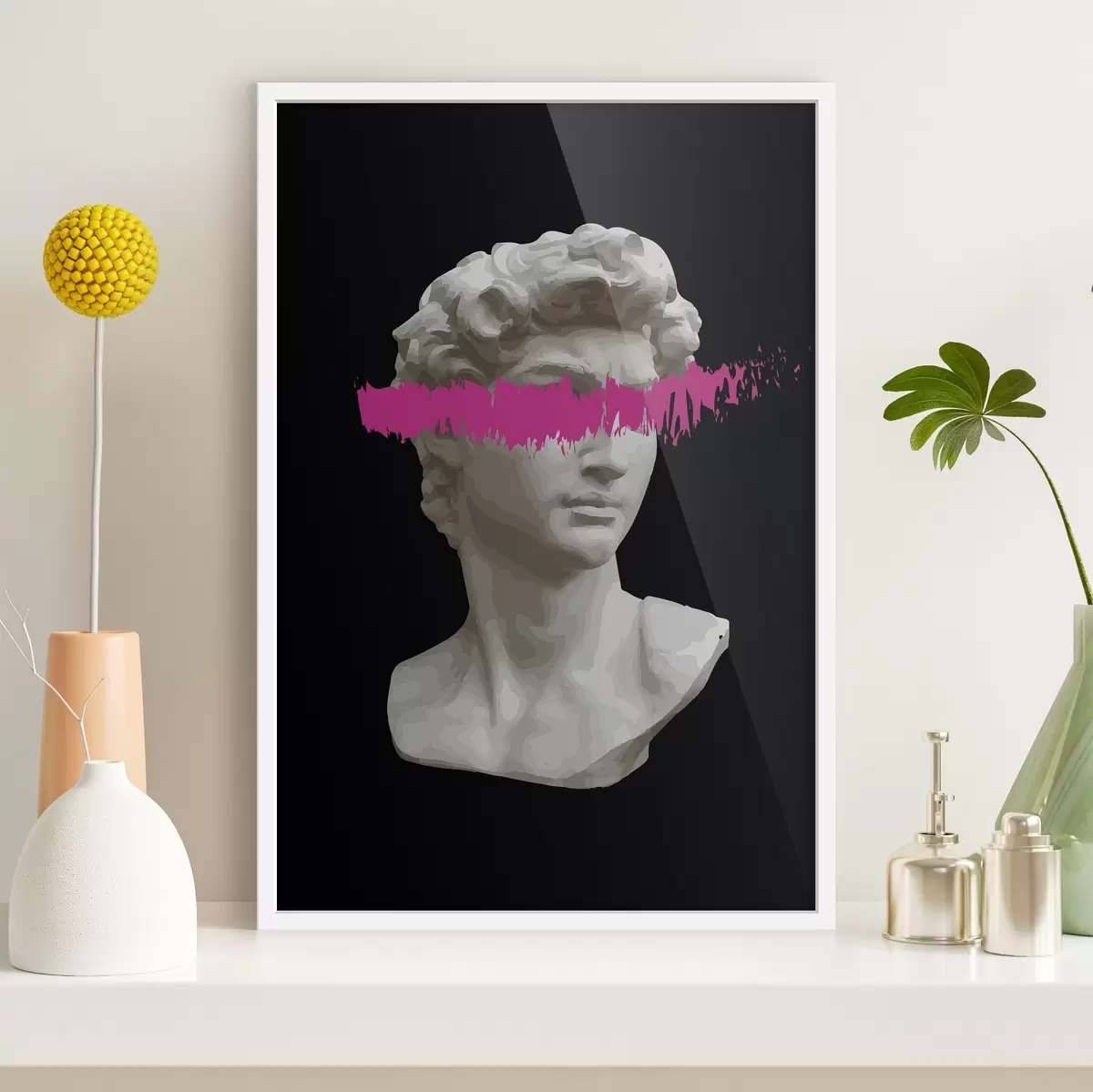Poster Statue eines Mannes mit einer rosa Linie f38560
