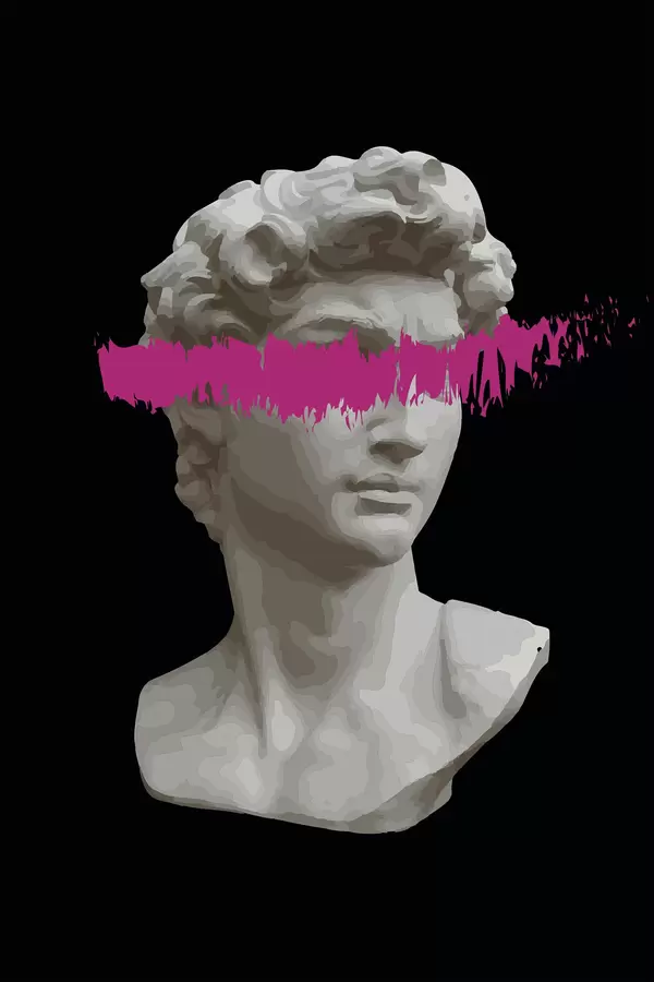 Poster Statue eines Mannes mit einer rosa Linie f38560