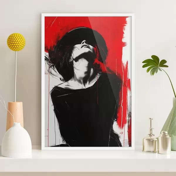 Poster Frau mit schwarzem Hut auf rotem Hintergrund Nr f38561