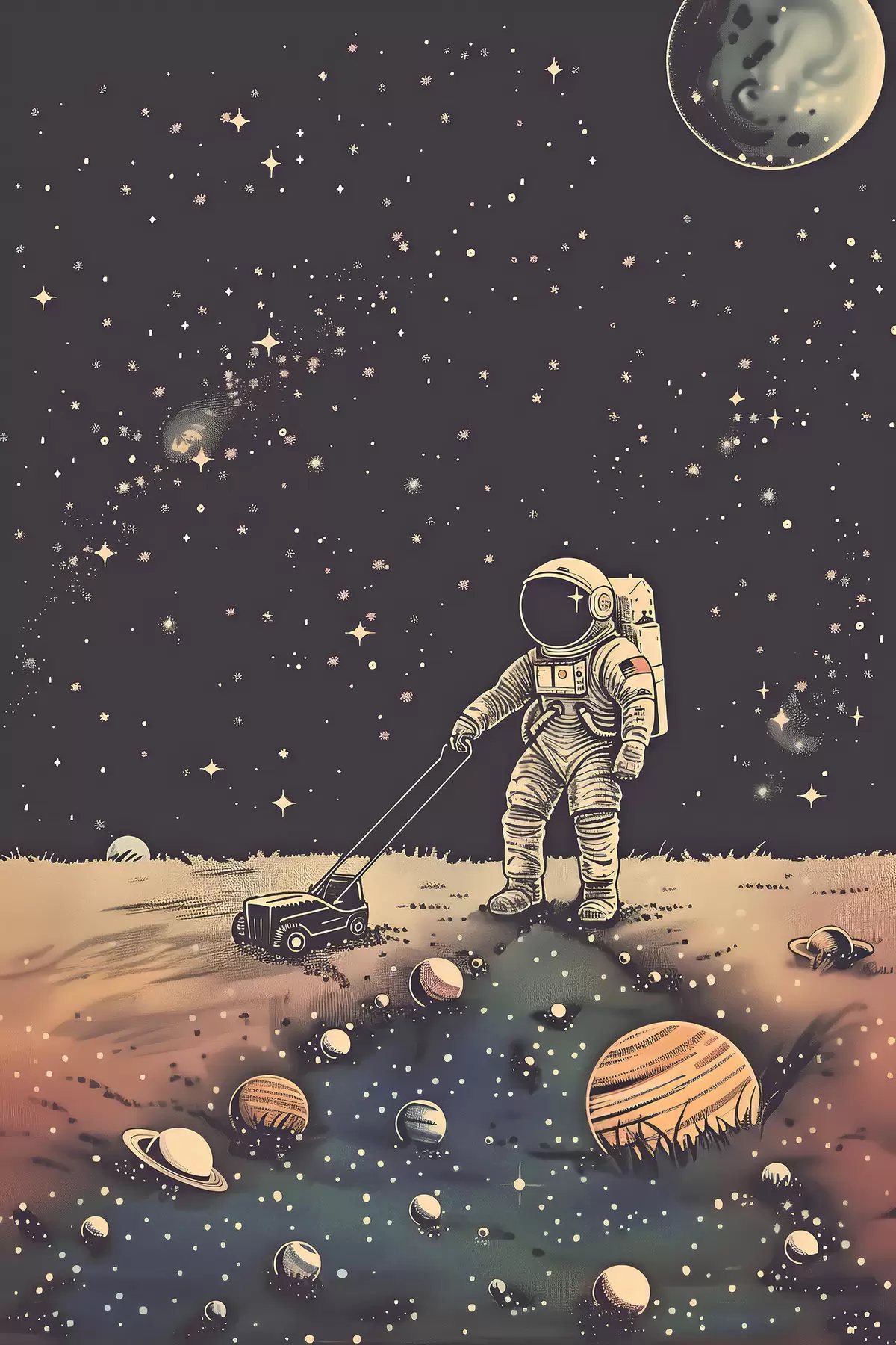 Poster Astronaut mit Rasenmäher im Weltraum f38637