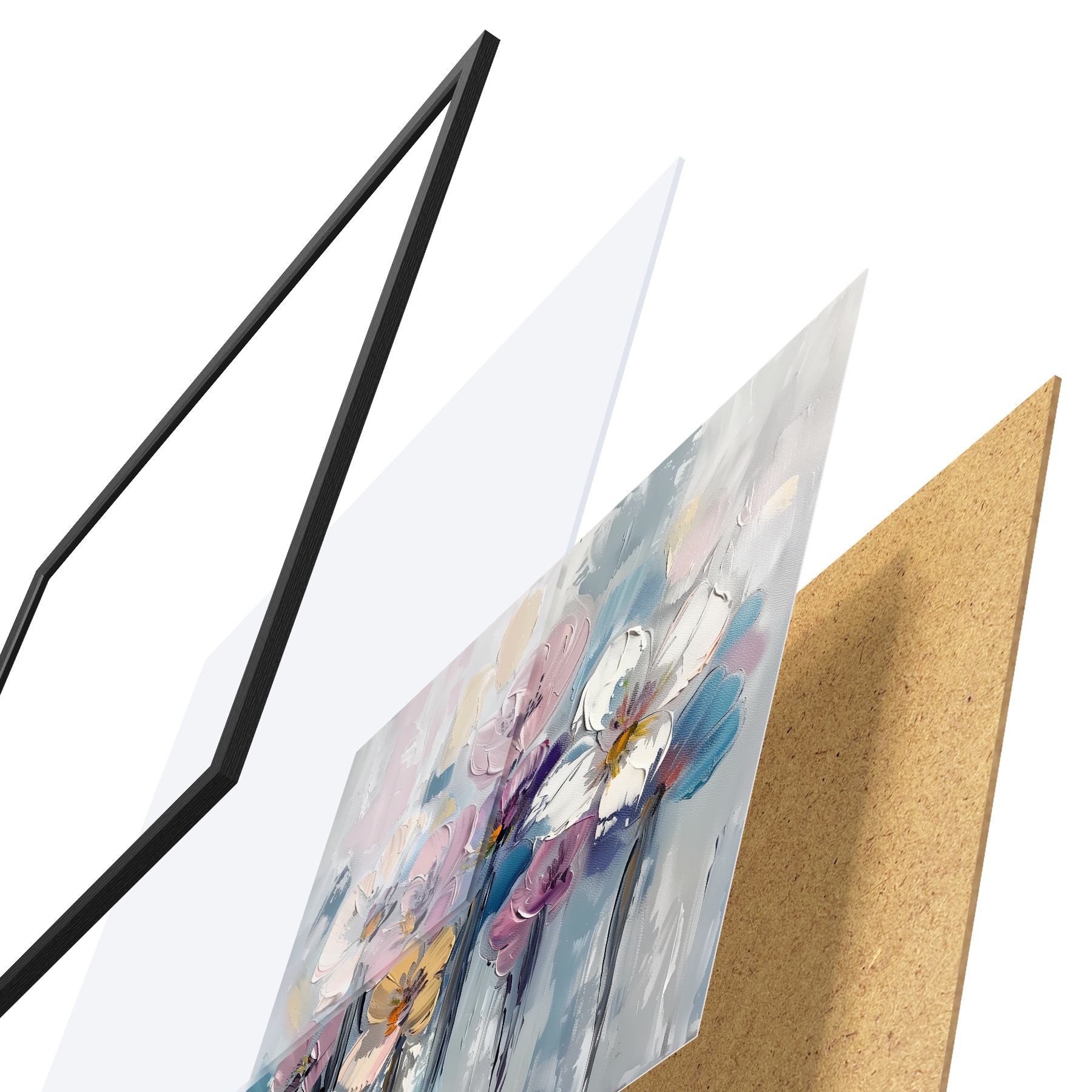 Das Poster besteht aus einem Rahmen, Plexiglas, einem gedruckten Bild und einer Rückwand aus Spanplatten. Dank der Halterungen auf der Rückseite kann das Poster sofort an die Wand gehängt werden.