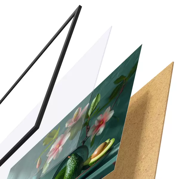 Das Poster besteht aus einem Rahmen, Plexiglas, einem gedruckten Bild und einer Rückwand aus Spanplatten. Dank der Halterungen auf der Rückseite kann das Poster sofort an die Wand gehängt werden.