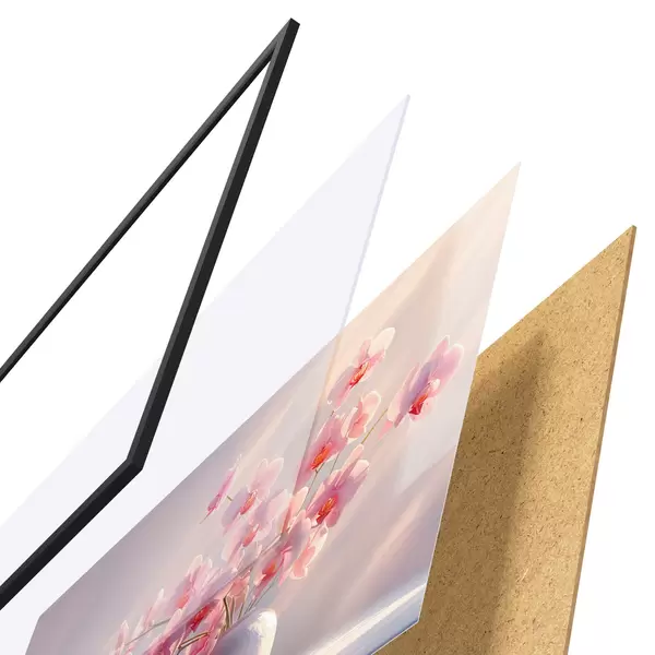 Das Poster besteht aus einem Rahmen, Plexiglas, einem gedruckten Bild und einer Rückwand aus Spanplatten. Dank der Halterungen auf der Rückseite kann das Poster sofort an die Wand gehängt werden.
