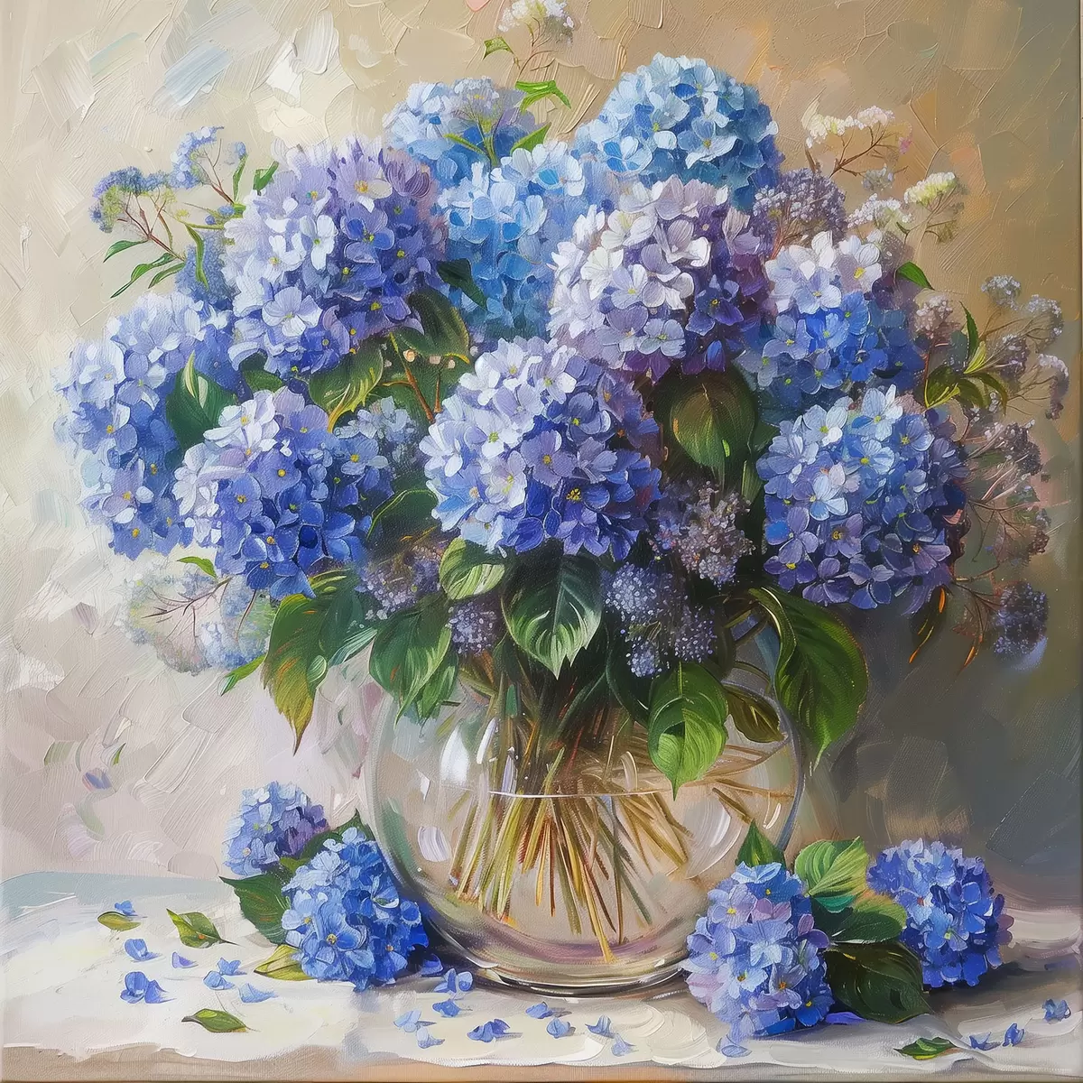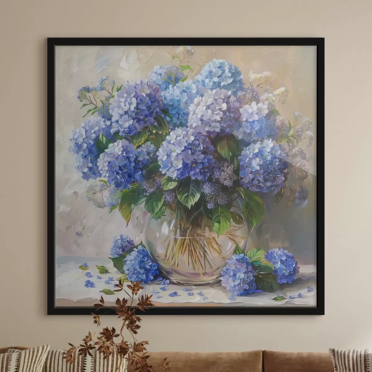 Poster Blaue Hortensien auf dem Tisch Nr f38709