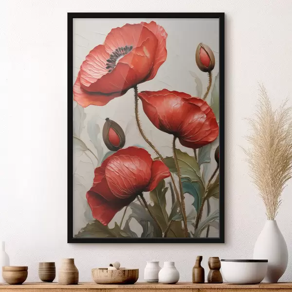 Poster Schöne rote Mohnblumen mit Ölfarben f38734