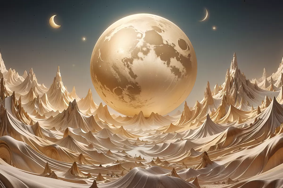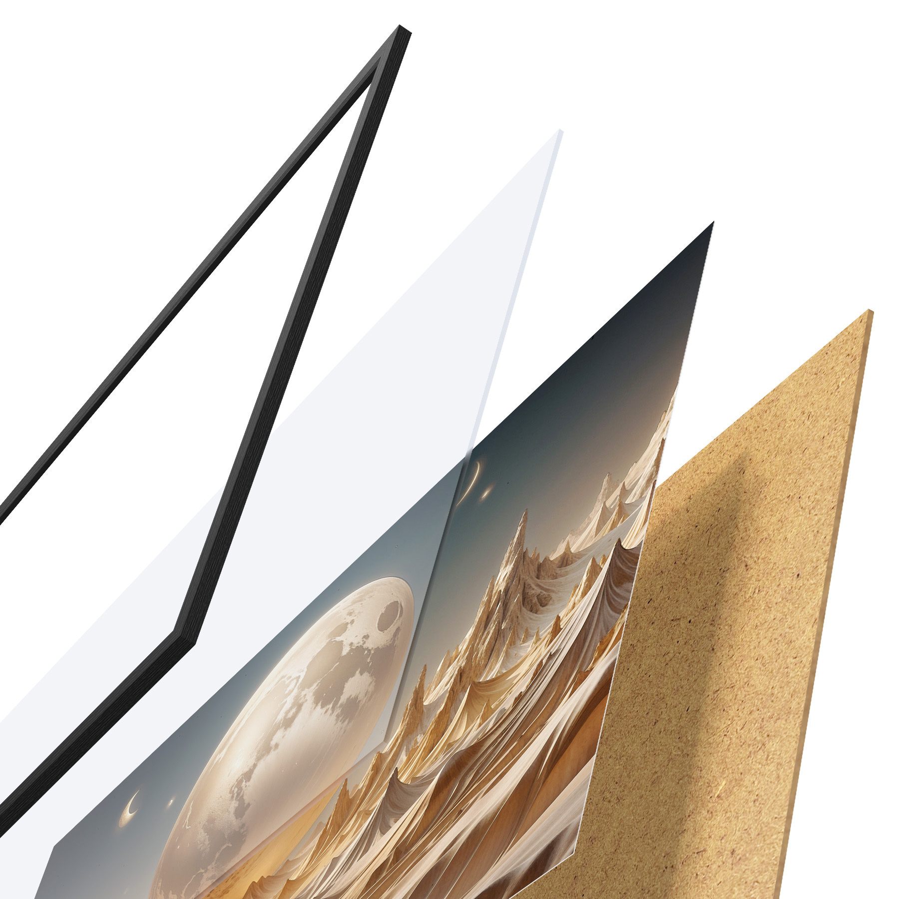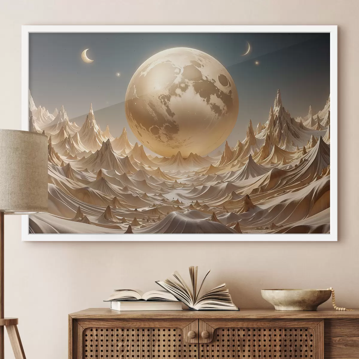 Poster Glühender Vollmond über einer surrealen Berglandschaft mit Gipfeln Nr f38775