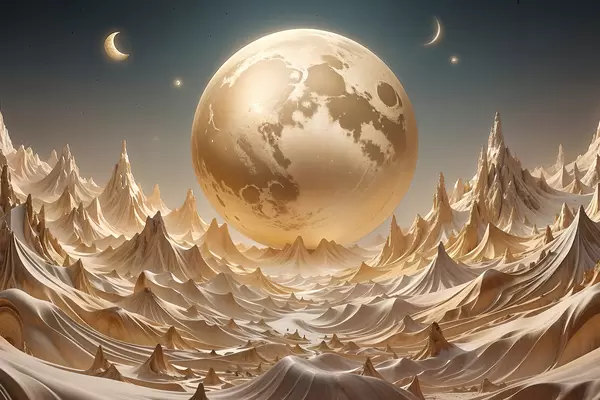 Poster Glühender Vollmond über einer surrealen Berglandschaft mit Gipfeln Nr f38775