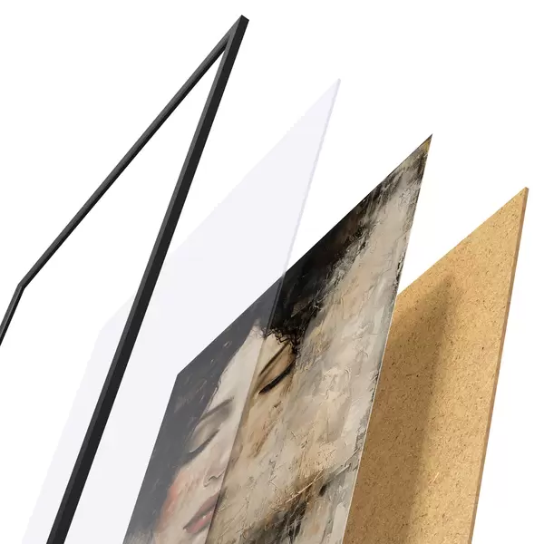 Das Poster besteht aus einem Rahmen, Plexiglas, einem gedruckten Bild und einer Rückwand aus Spanplatten. Dank der Halterungen auf der Rückseite kann das Poster sofort an die Wand gehängt werden.