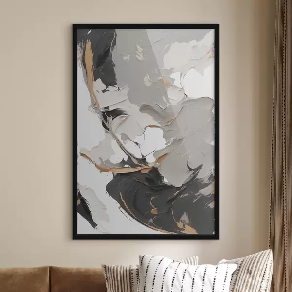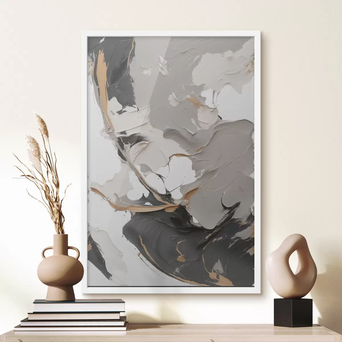Poster Abstraktes Gemälde in Weiß- und Grautönen Nr f38855