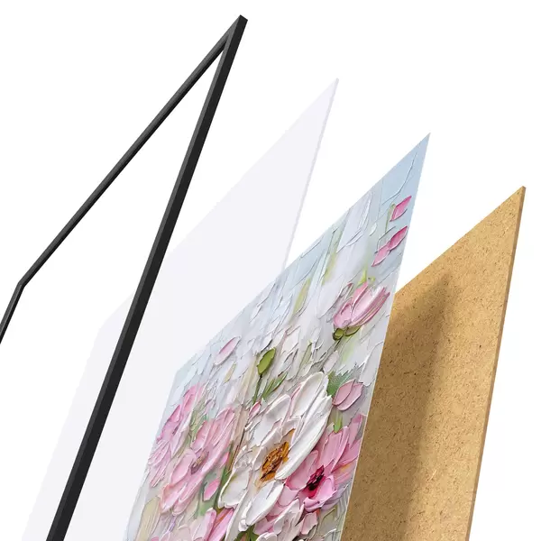 Das Poster besteht aus einem Rahmen, Plexiglas, einem gedruckten Bild und einer Rückwand aus Spanplatten. Dank der Halterungen auf der Rückseite kann das Poster sofort an die Wand gehängt werden.
