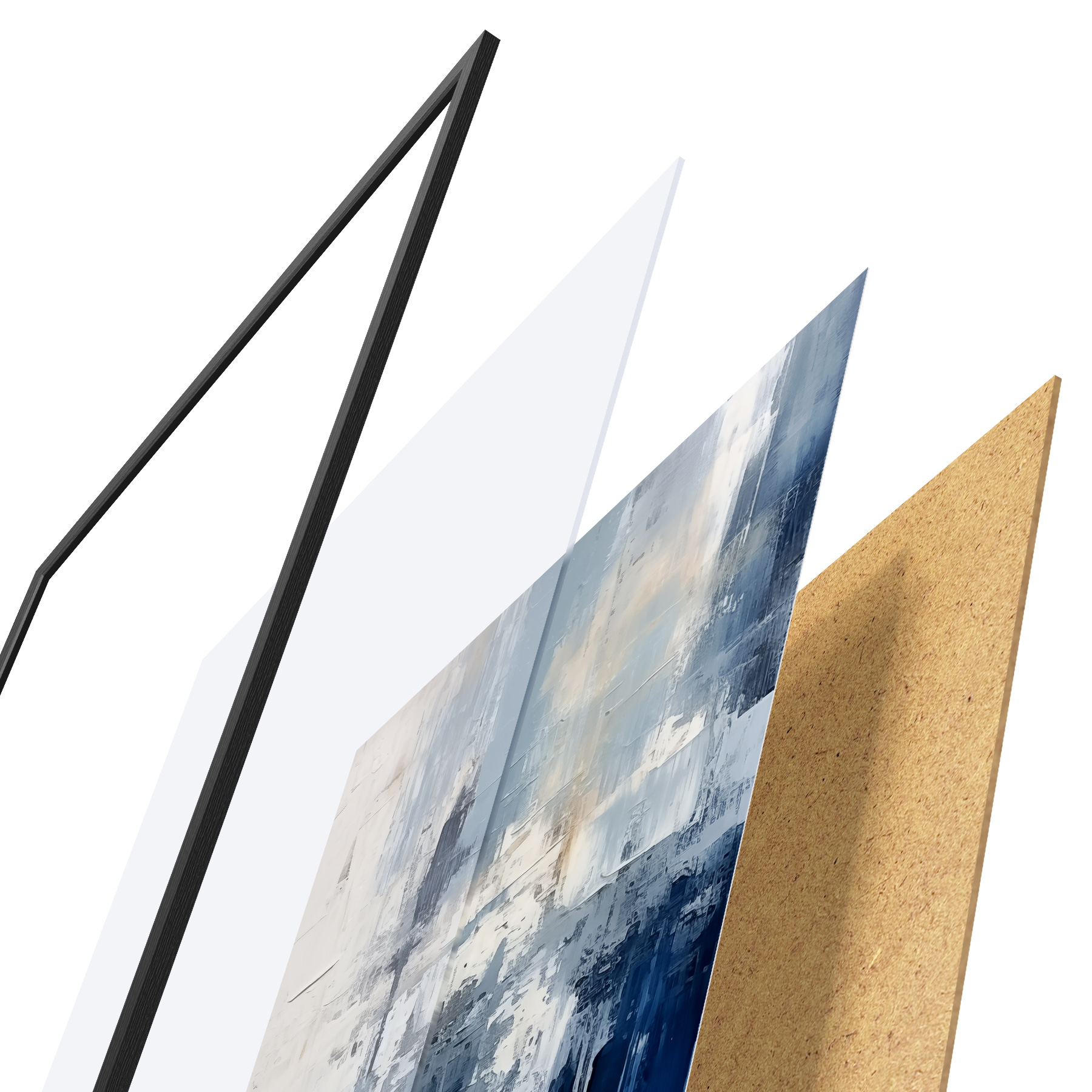 Das Poster besteht aus einem Rahmen, Plexiglas, einem gedruckten Bild und einer Rückwand aus Spanplatten. Dank der Halterungen auf der Rückseite kann das Poster sofort an die Wand gehängt werden.