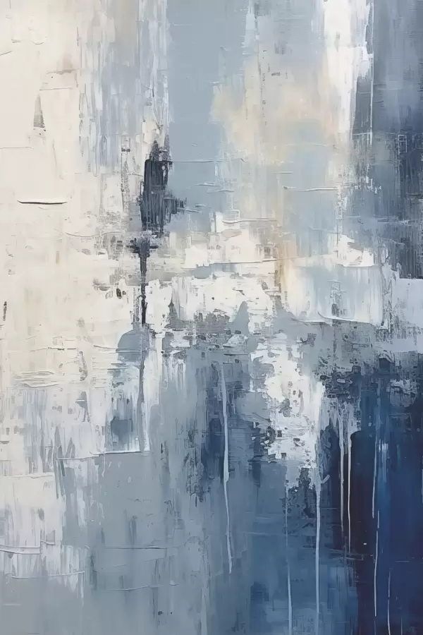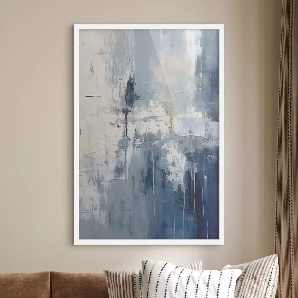 Poster Abstraktes minimalistisches Ölgemälde, gerieben, geometrisch, Flecken, blaue und weiße Farbe f38906