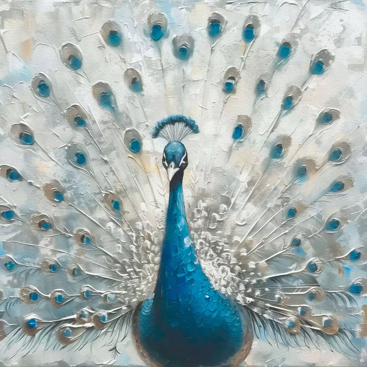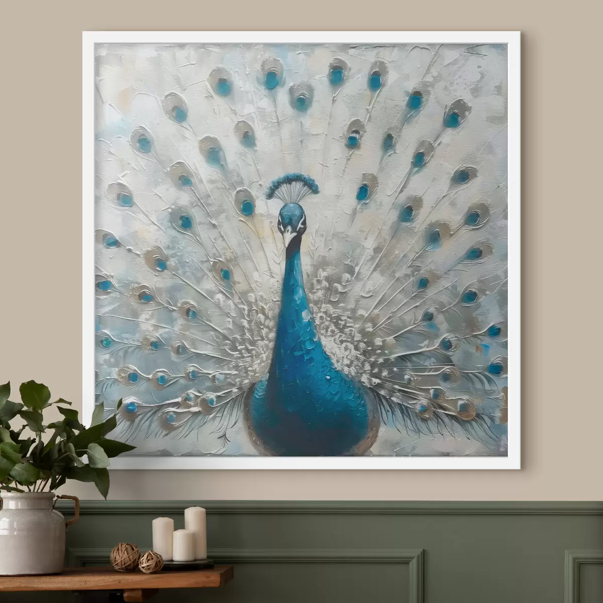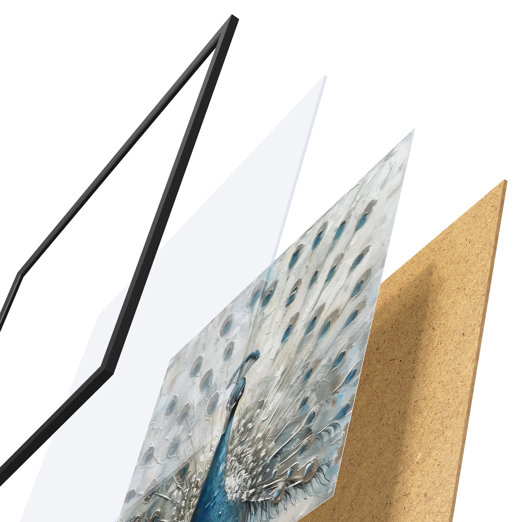 Poster Blauer Pfau mit Federn bedruckter Textur f38931