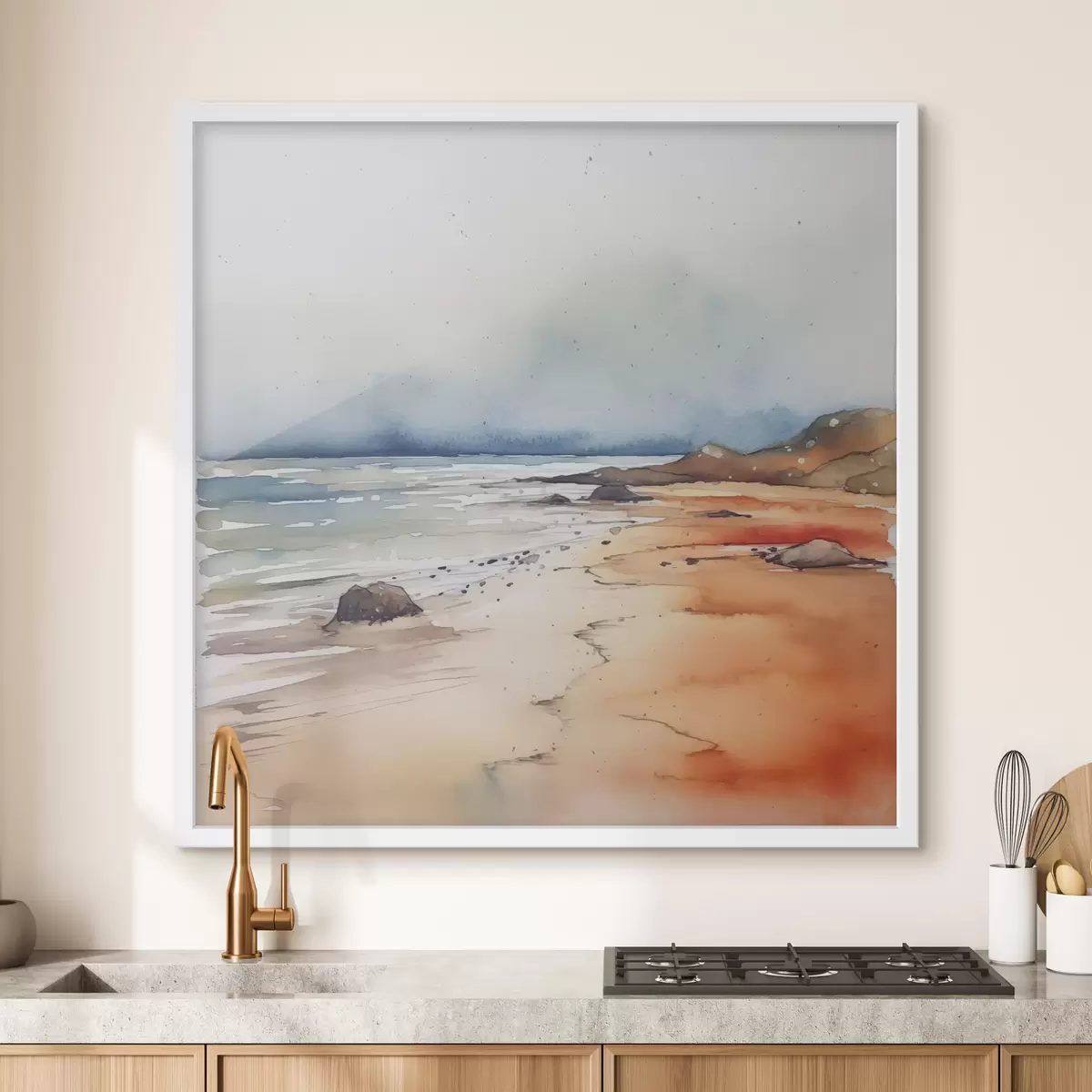 Poster Meer und Strand, regen, Aquarell, Flecken, Landschaft, Landschaft, blau, orange Farbe Nr f38936