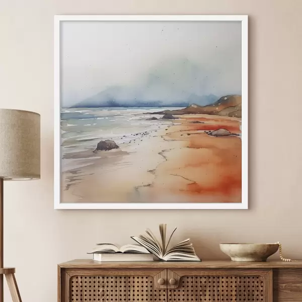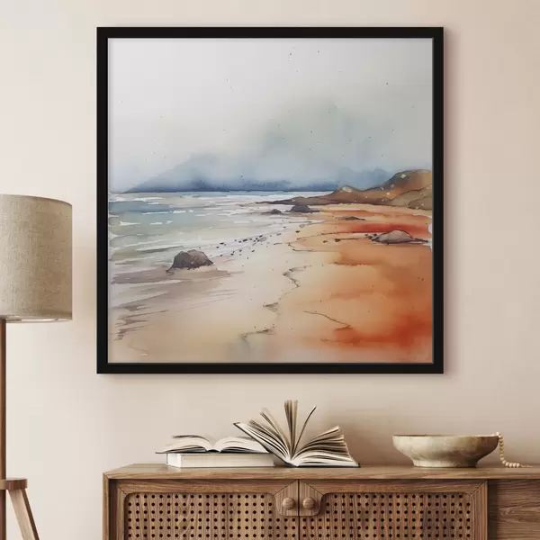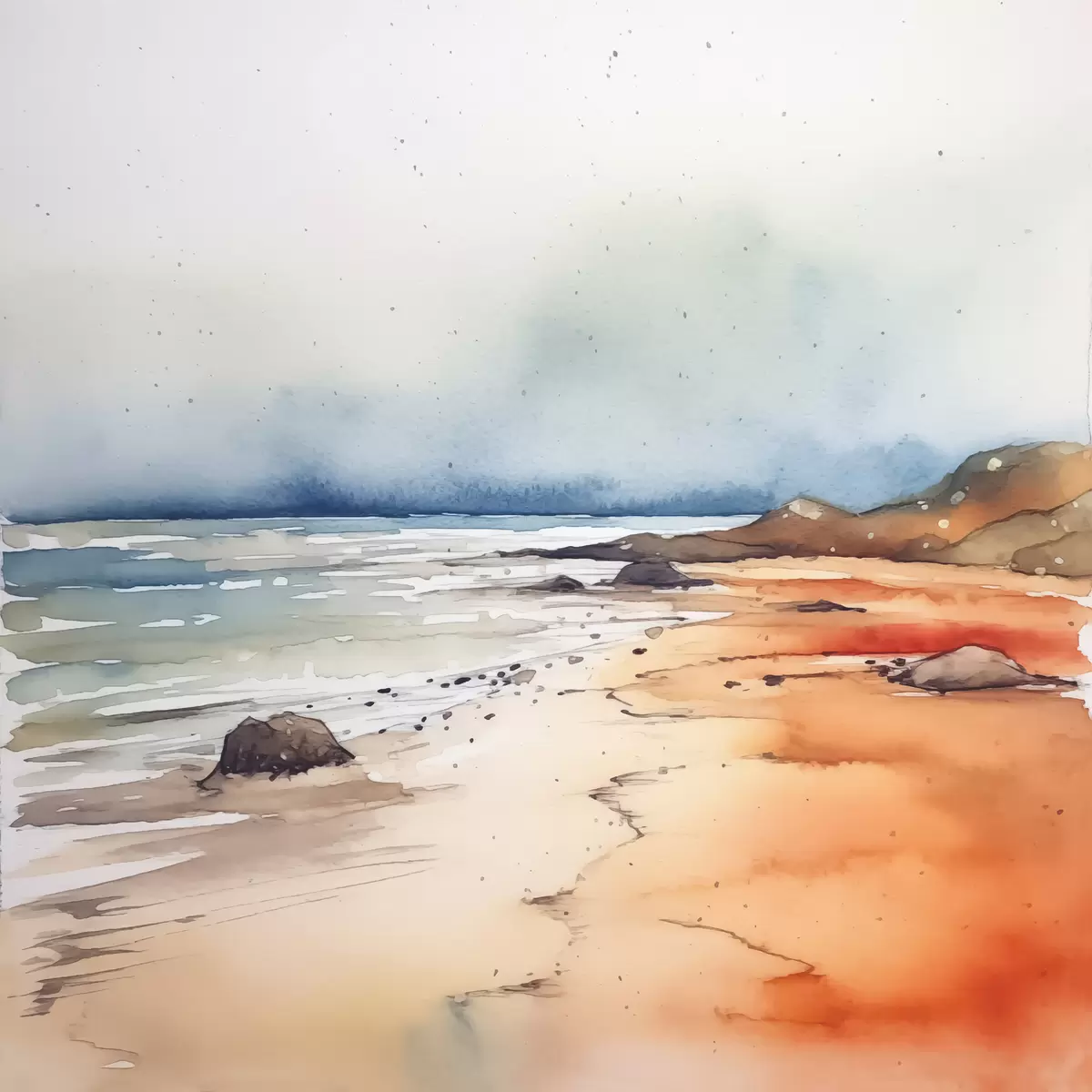 Poster Meer und Strand, regen, Aquarell, Flecken, Landschaft, Landschaft, blau, orange Farbe Nr f38936