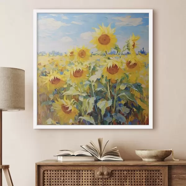 Poster Sonnenblumenfeld Ölgemälde, gelb und blau f38953