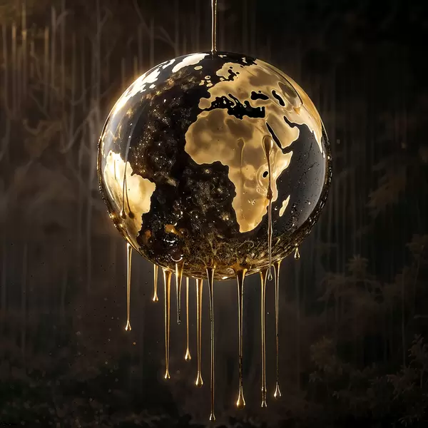 Poster Eine glühende Kugel, die die Erde inmitten einer tropfenden Flüssigkeit auf einem dunklen Hintergrund darstellt Nr f38983