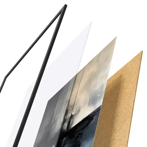 Das Poster besteht aus einem Rahmen, Plexiglas, einem gedruckten Bild und einer Rückwand aus Spanplatten. Dank der Halterungen auf der Rückseite kann das Poster sofort an die Wand gehängt werden.