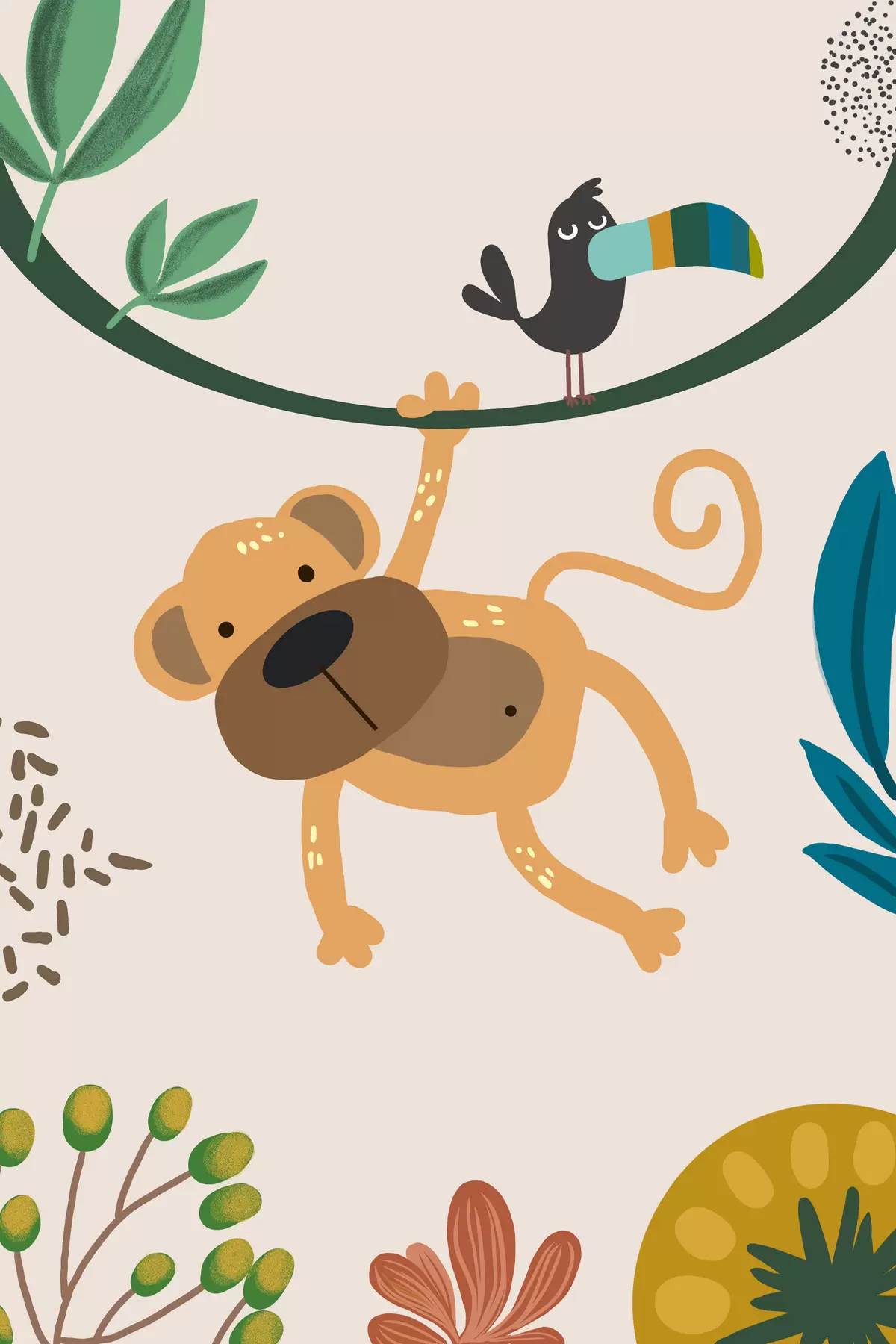 Poster Affe im Dschungel im Safari-Stil, Boho Nr f39094