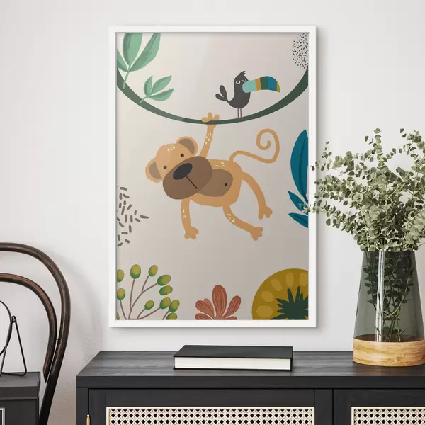Poster Affe im Dschungel im Safari-Stil, Boho f39094
