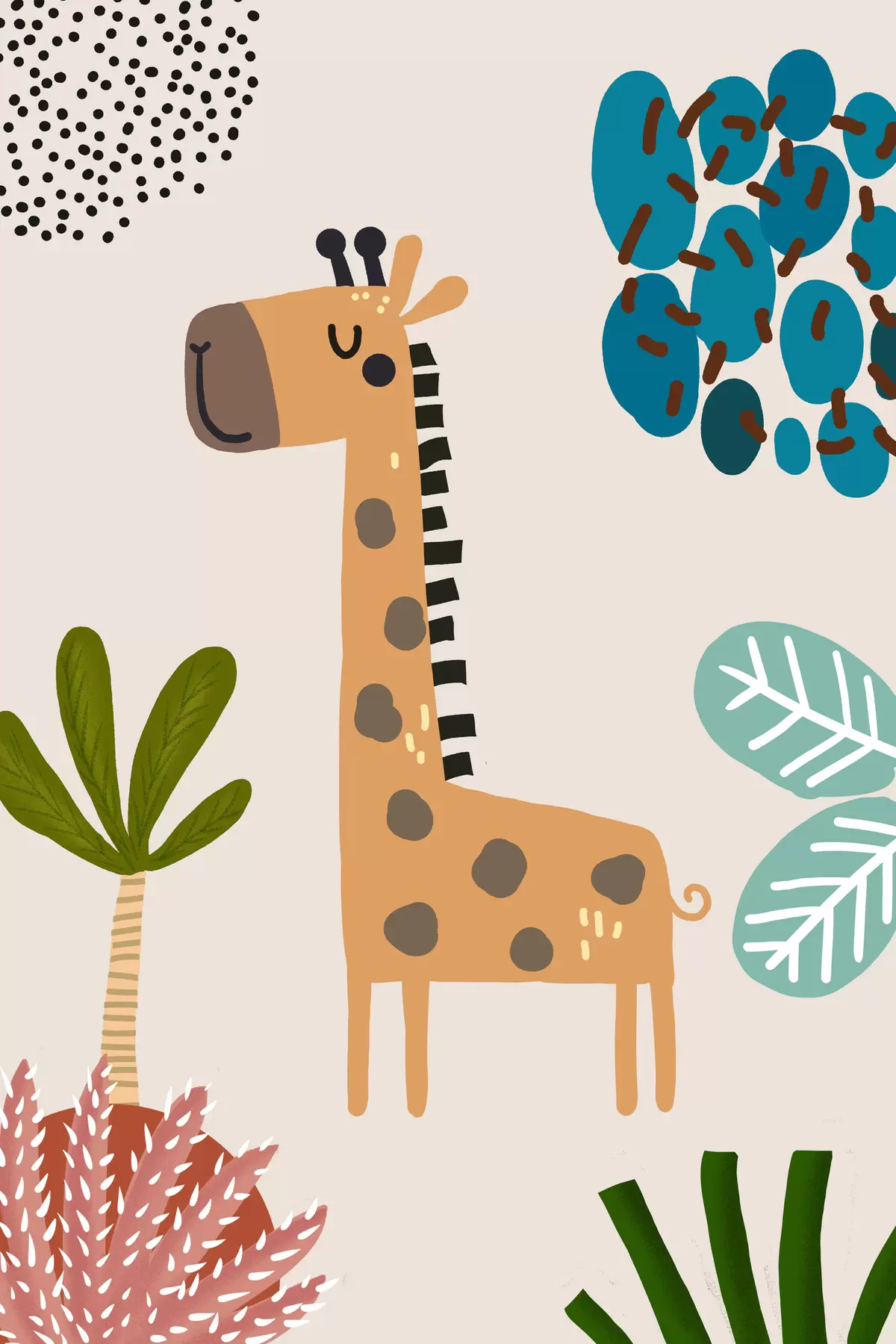 Poster Giraffe im Dschungel im Safari-Stil, Boho Nr f39096