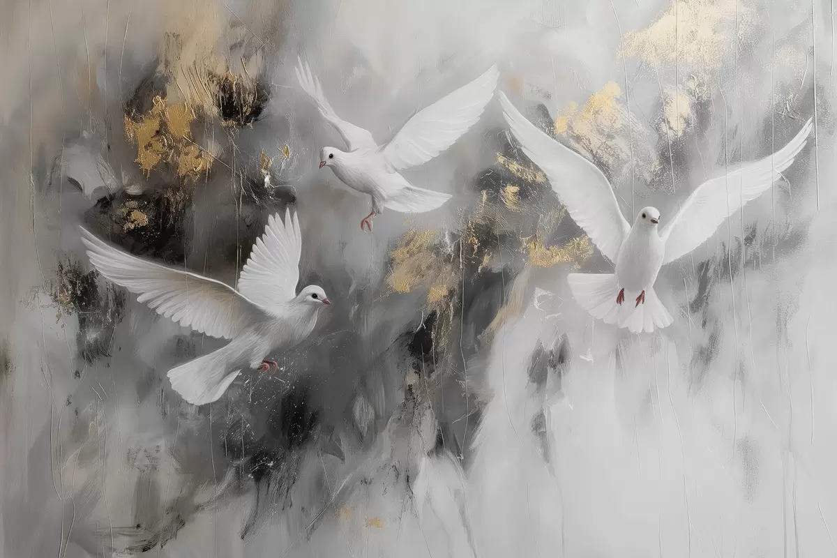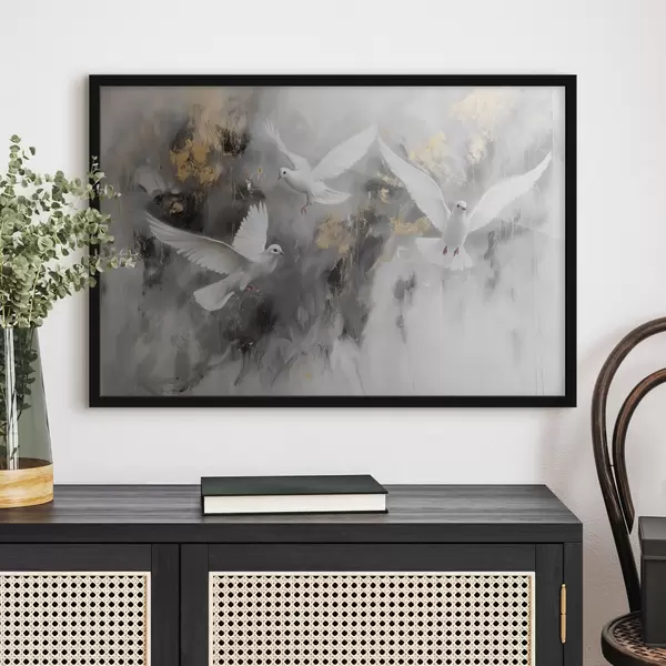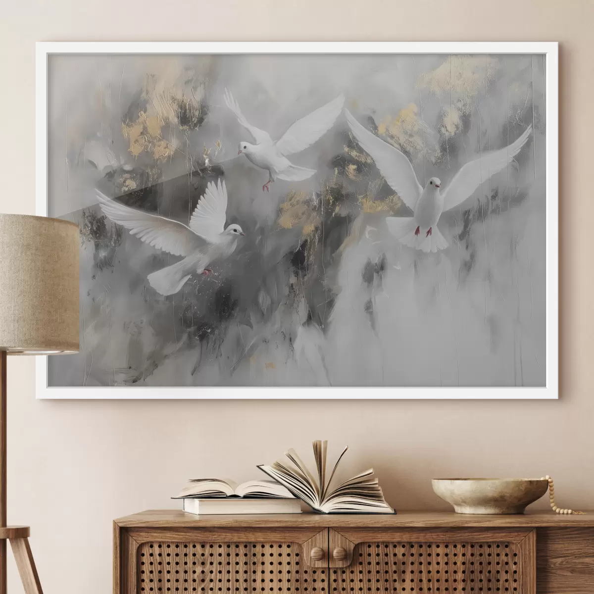 Poster Weiße Tauben auf grauem Hintergrund Nr f39101