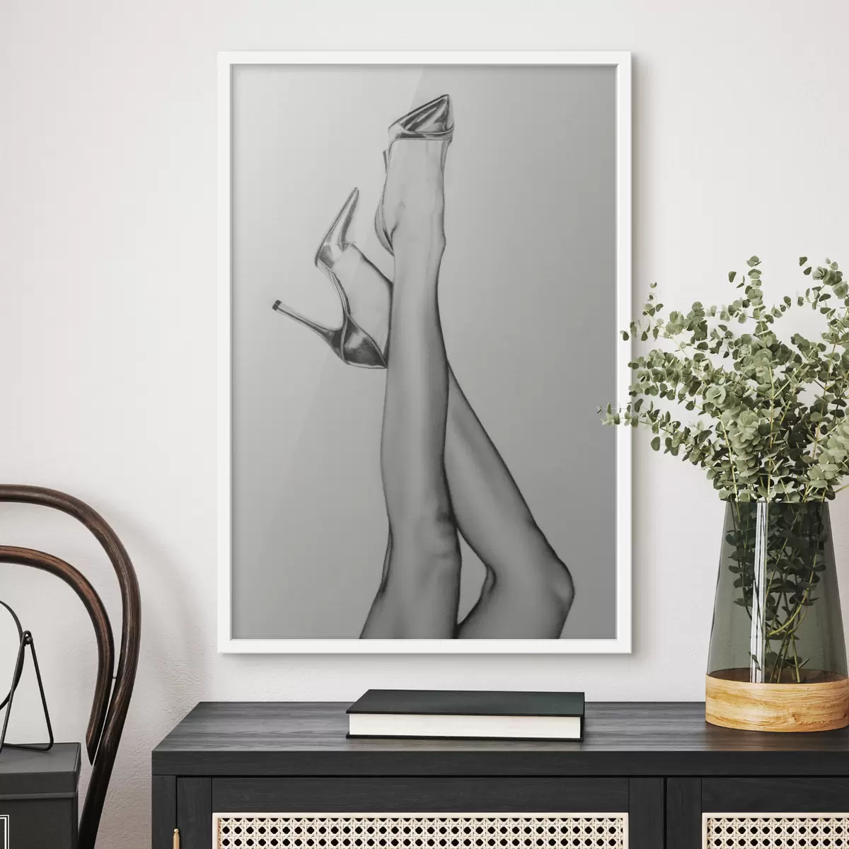 Poster Modellbeine auf Absätzen, Modeillustratorion, Kunst, neuer Trend f39110