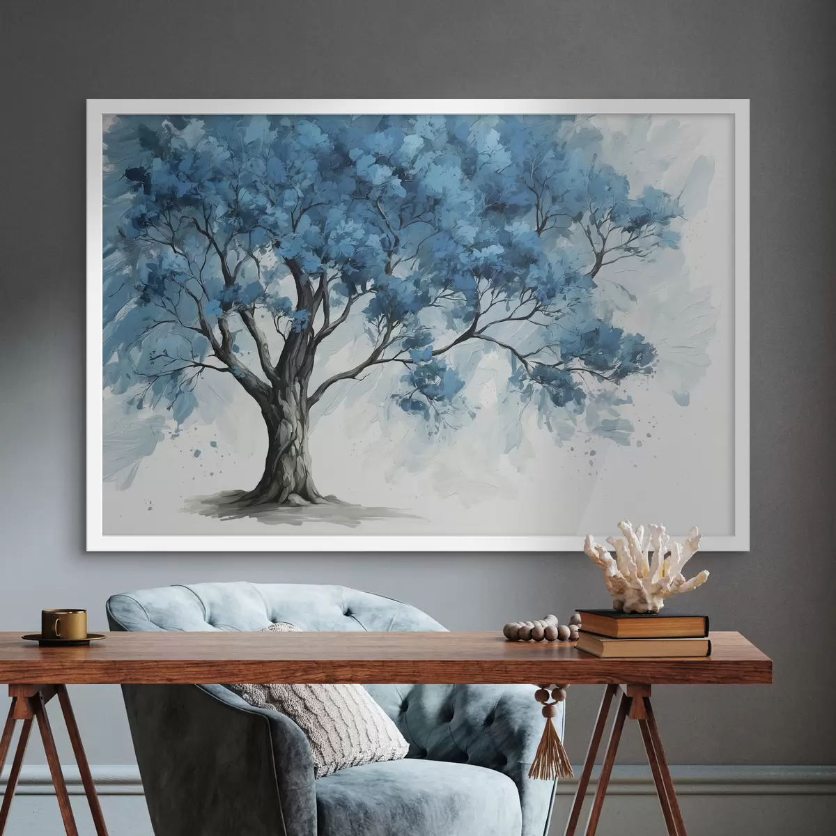 Poster Baum mit blauen Blättern auf weißem Hintergrund Nr f39153