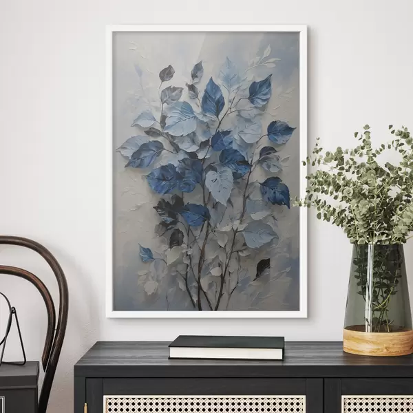 Poster Pflanze mit weißen und blauen Blättern f39156