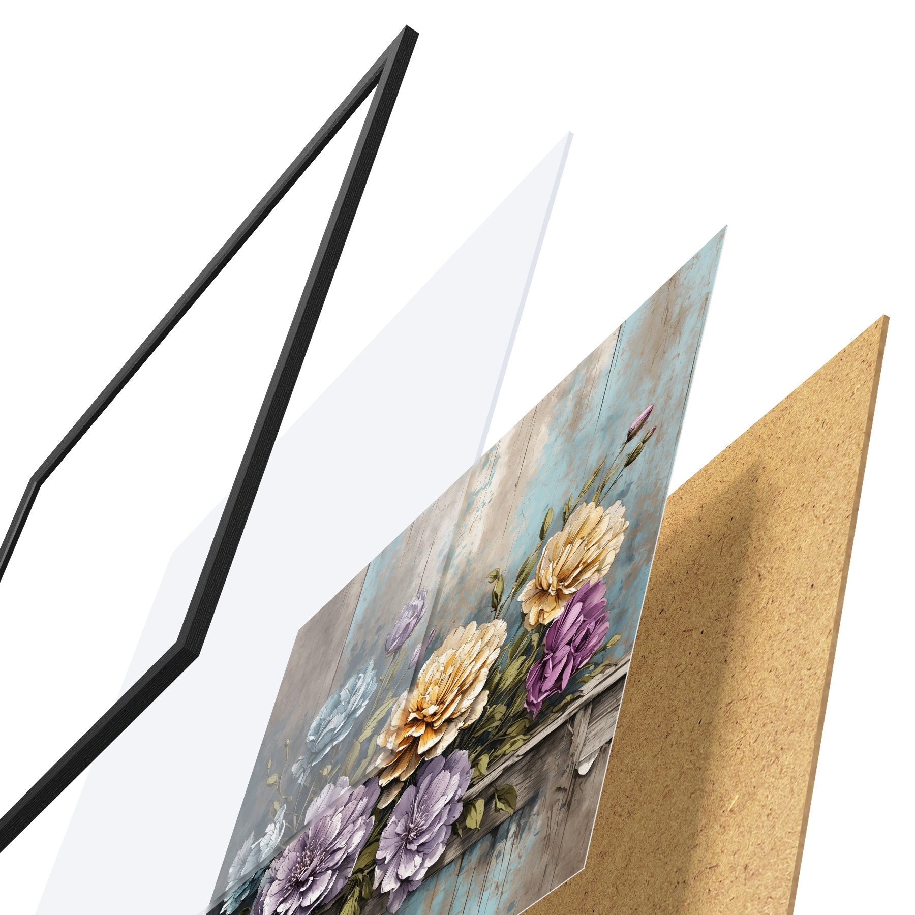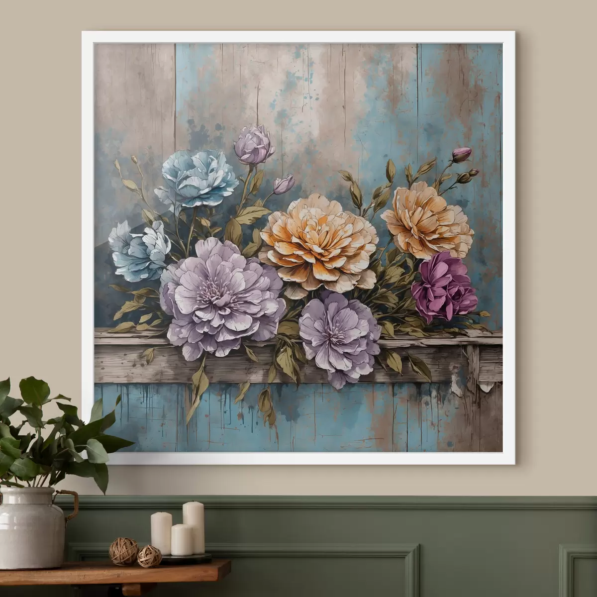 Poster Blumen und Blätter auf altem Holzregal Nr f39169