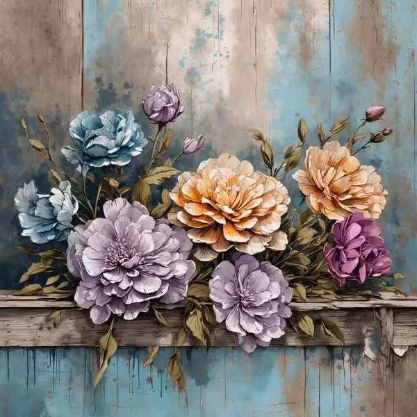 Poster Blumen und Blätter auf altem Holzregal Nr f39169