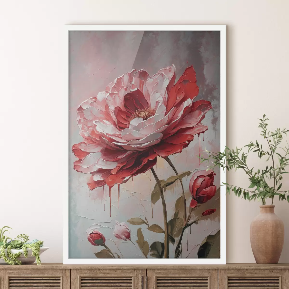 Poster Rote Blume auf weiß-grauem Hintergrund Nr f39173