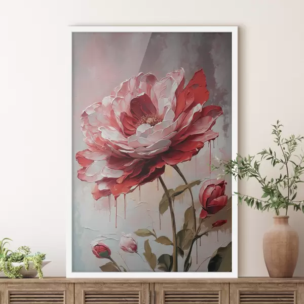 Poster Rote Blume auf weiß-grauem Hintergrund f39173