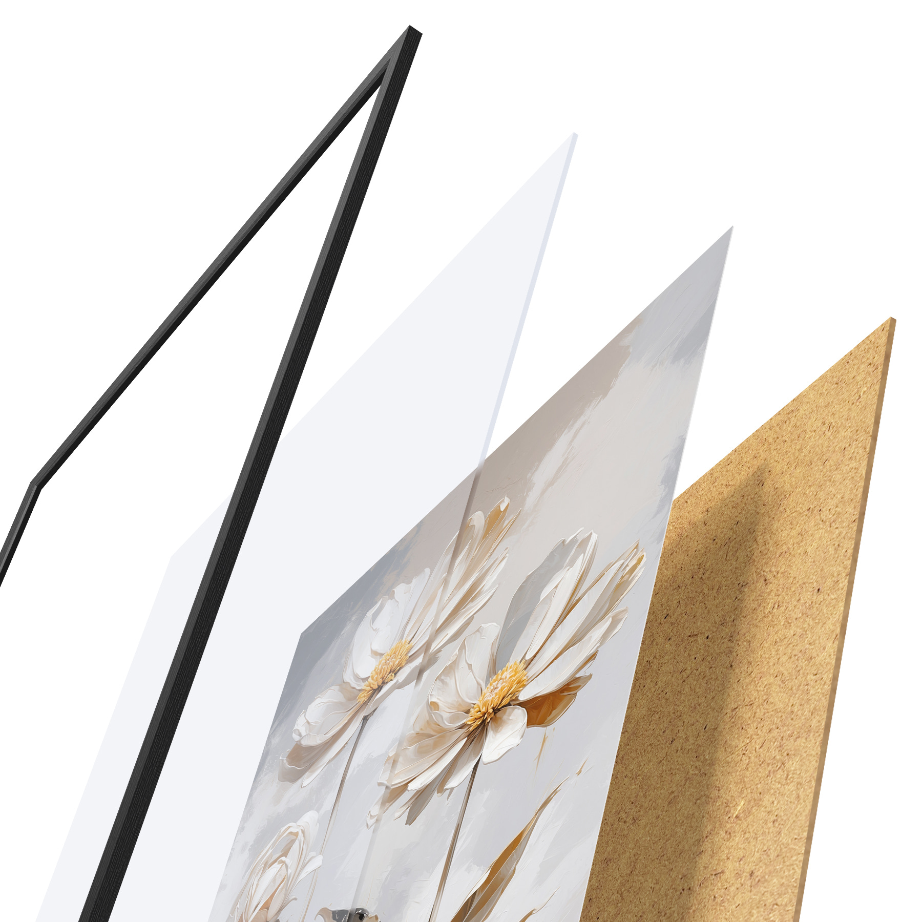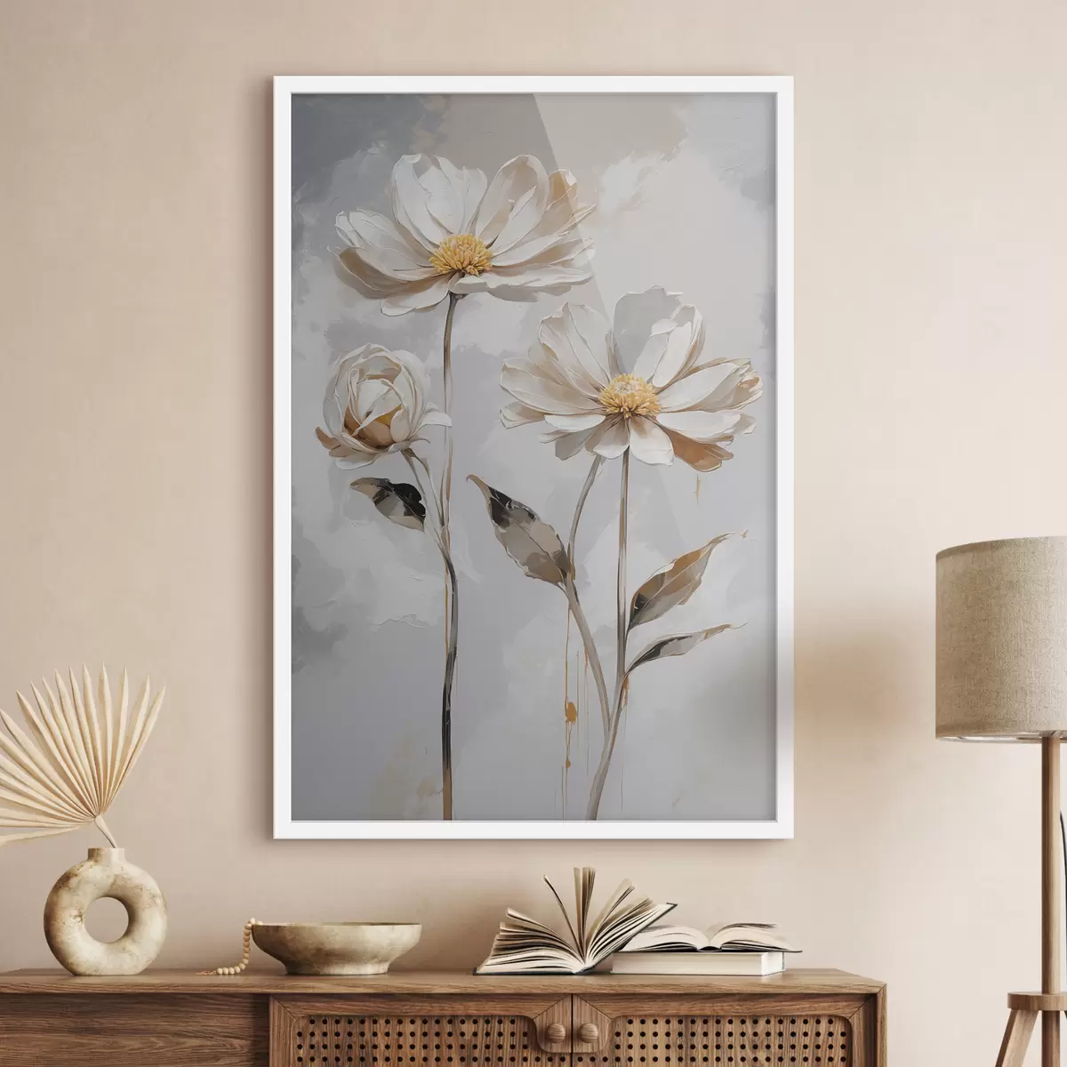 Poster Weiße Blumen auf weiß-grauem Hintergrund Nr f39174