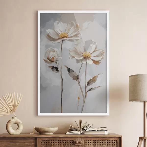 Poster Weiße Blumen auf weiß-grauem Hintergrund f39174