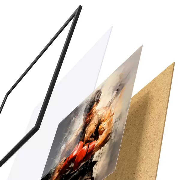 Das Poster besteht aus einem Rahmen, Plexiglas, einem gedruckten Bild und einer Rückwand aus Spanplatten. Dank der Halterungen auf der Rückseite kann das Poster sofort an die Wand gehängt werden.