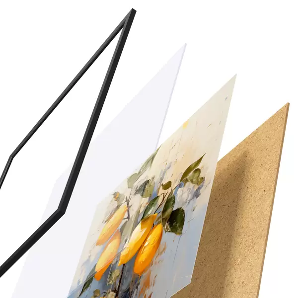Das Poster besteht aus einem Rahmen, Plexiglas, einem gedruckten Bild und einer Rückwand aus Spanplatten. Dank der Halterungen auf der Rückseite kann das Poster sofort an die Wand gehängt werden.
