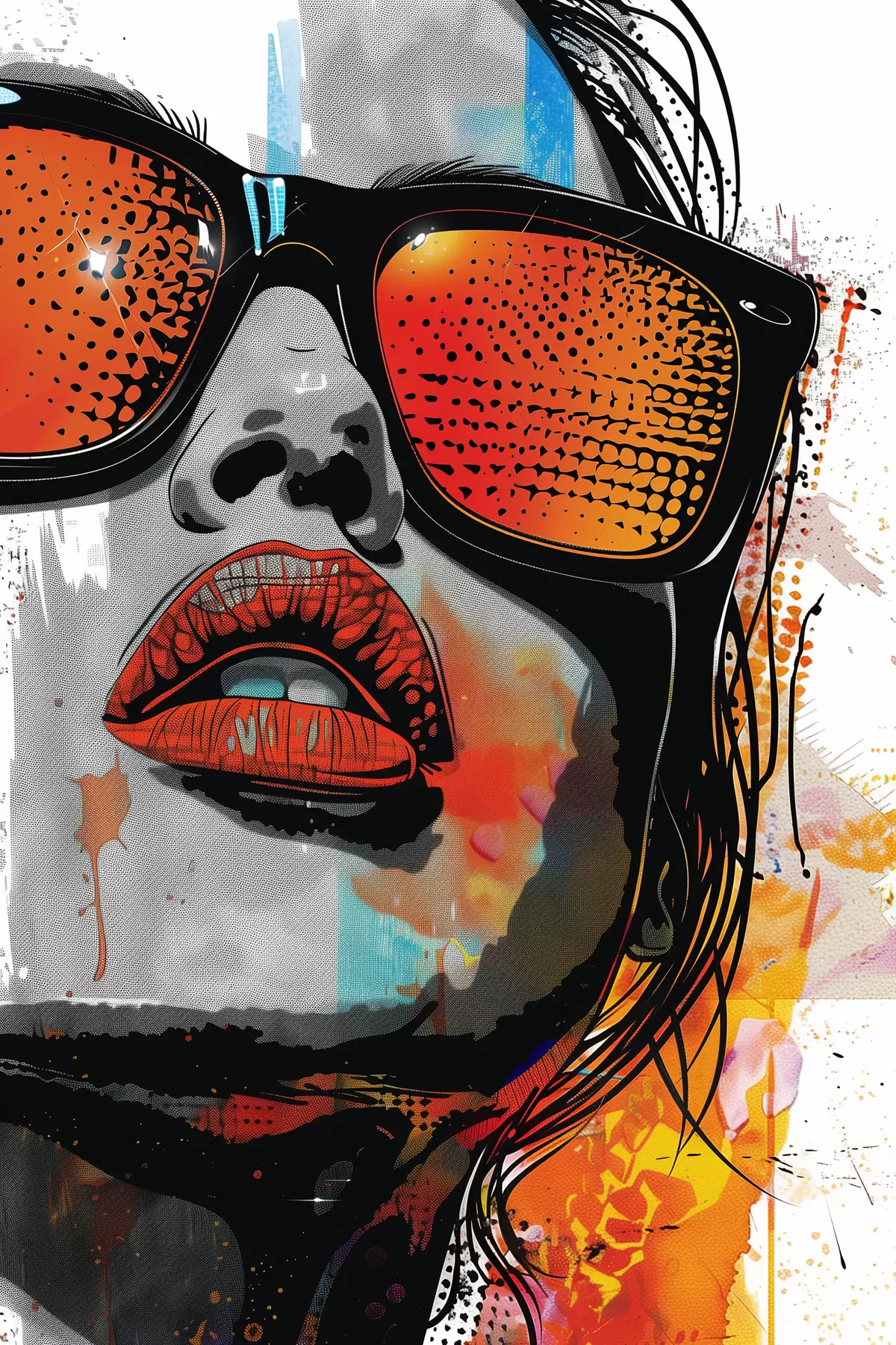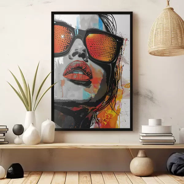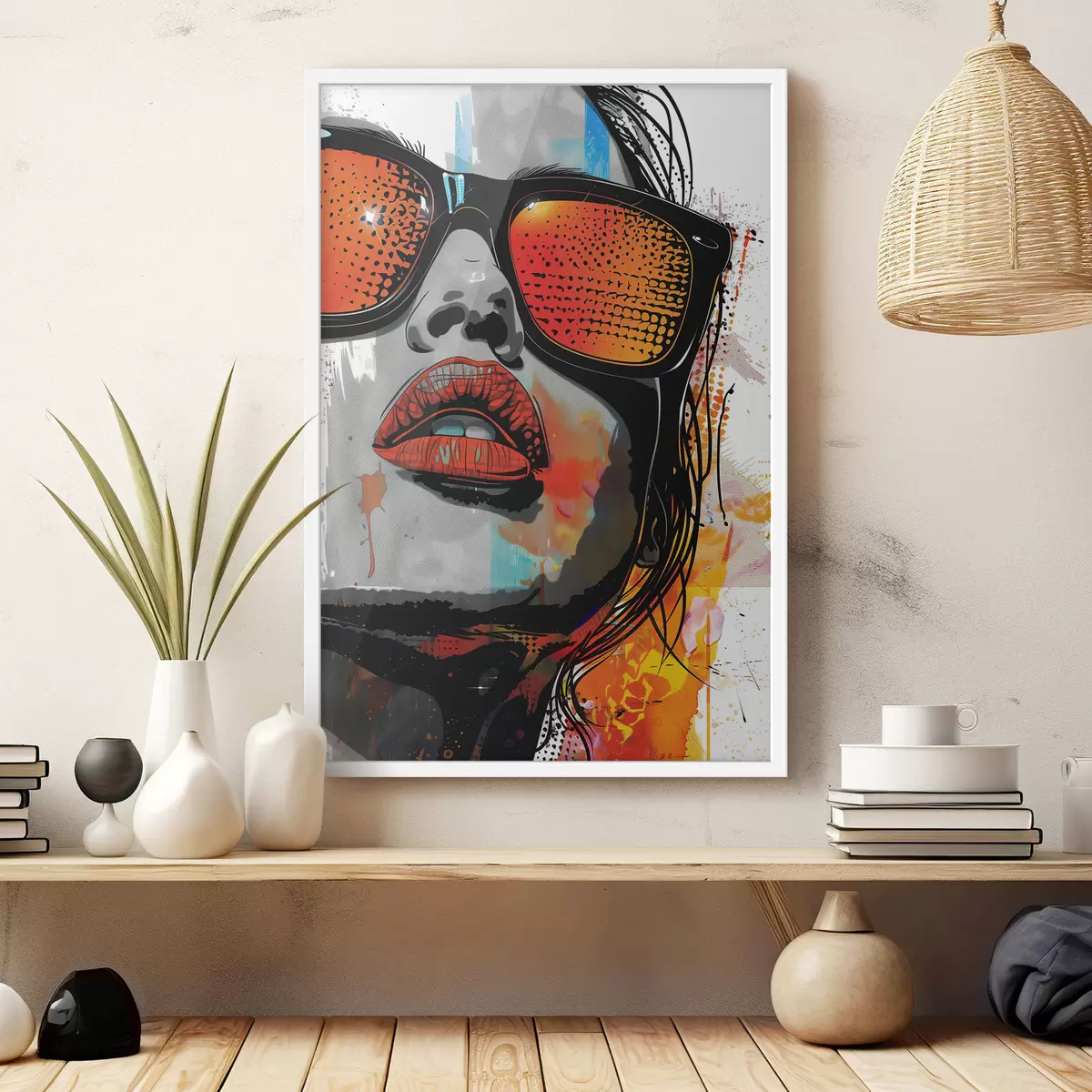 Poster Mädchen mit Brille im Pop-Art-Stil f39205