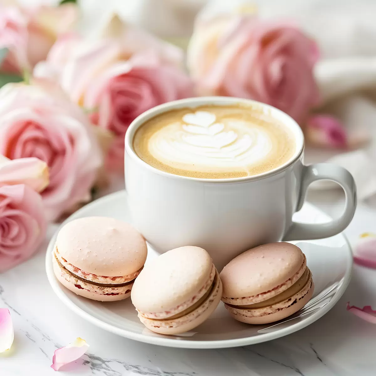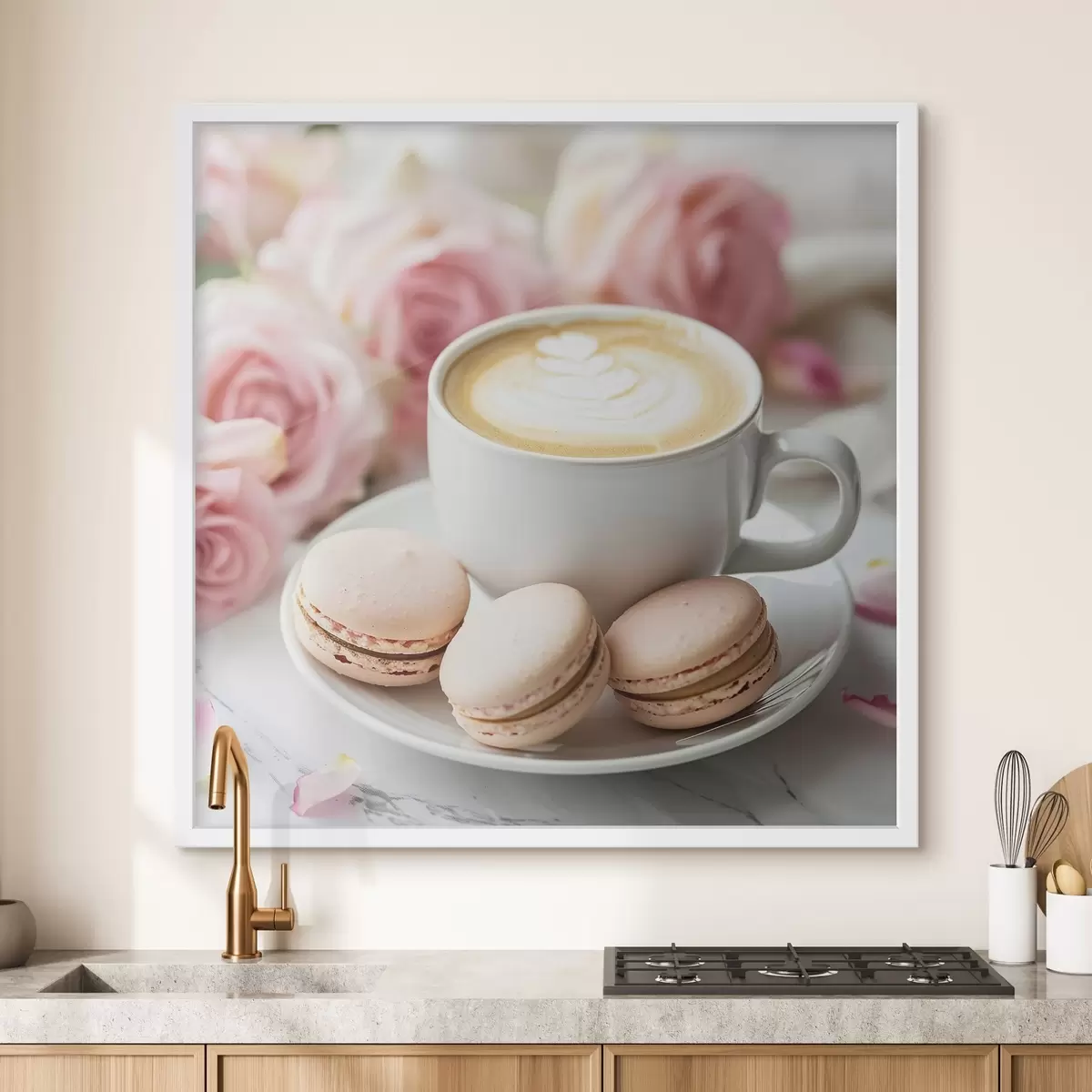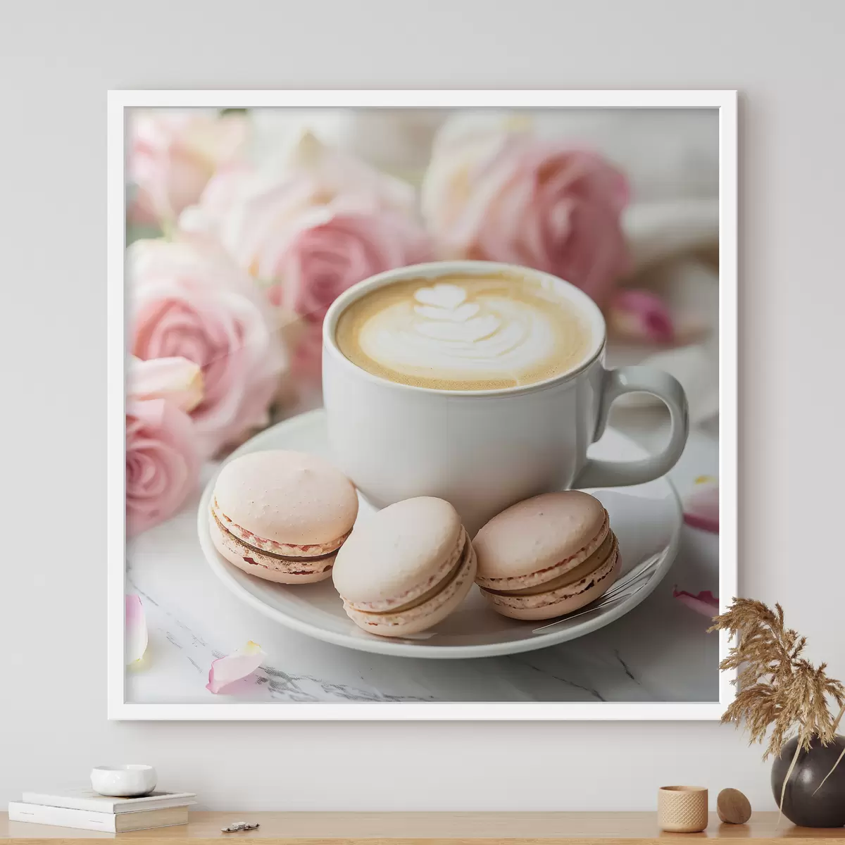 Poster Eine Tasse Kaffee auf einem zarten floralen Hintergrund f39232