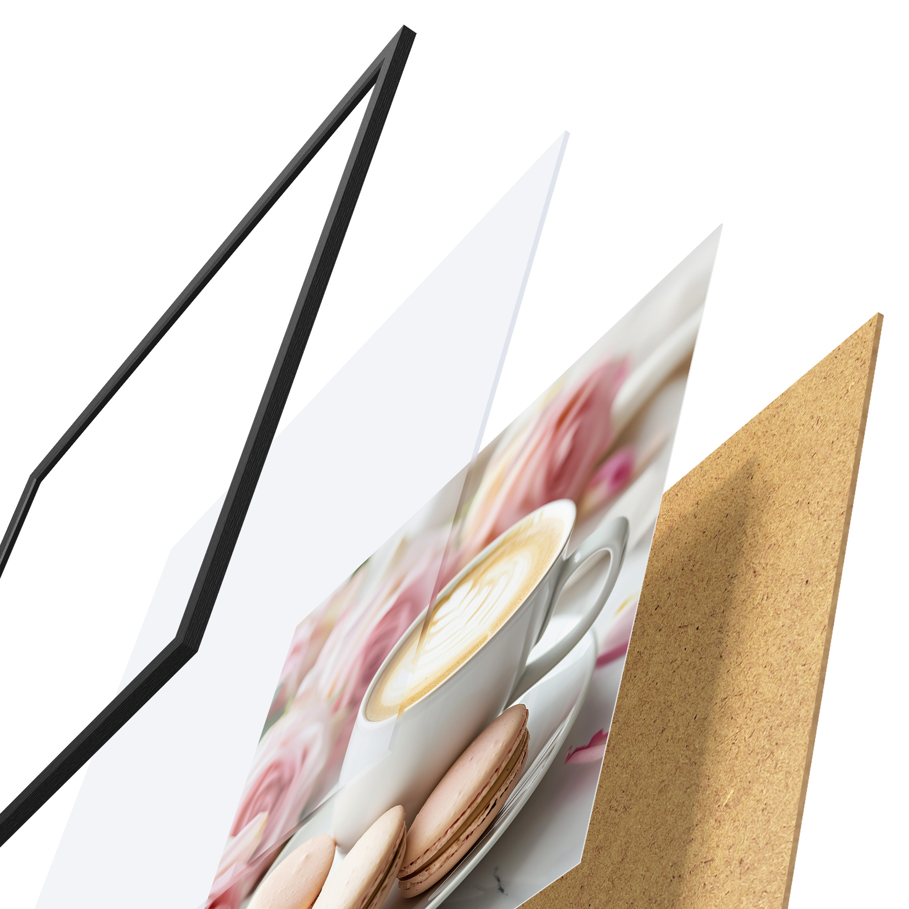 Das Poster besteht aus einem Rahmen, Plexiglas, einem gedruckten Bild und einer Rückwand aus Spanplatten. Dank der Halterungen auf der Rückseite kann das Poster sofort an die Wand gehängt werden.