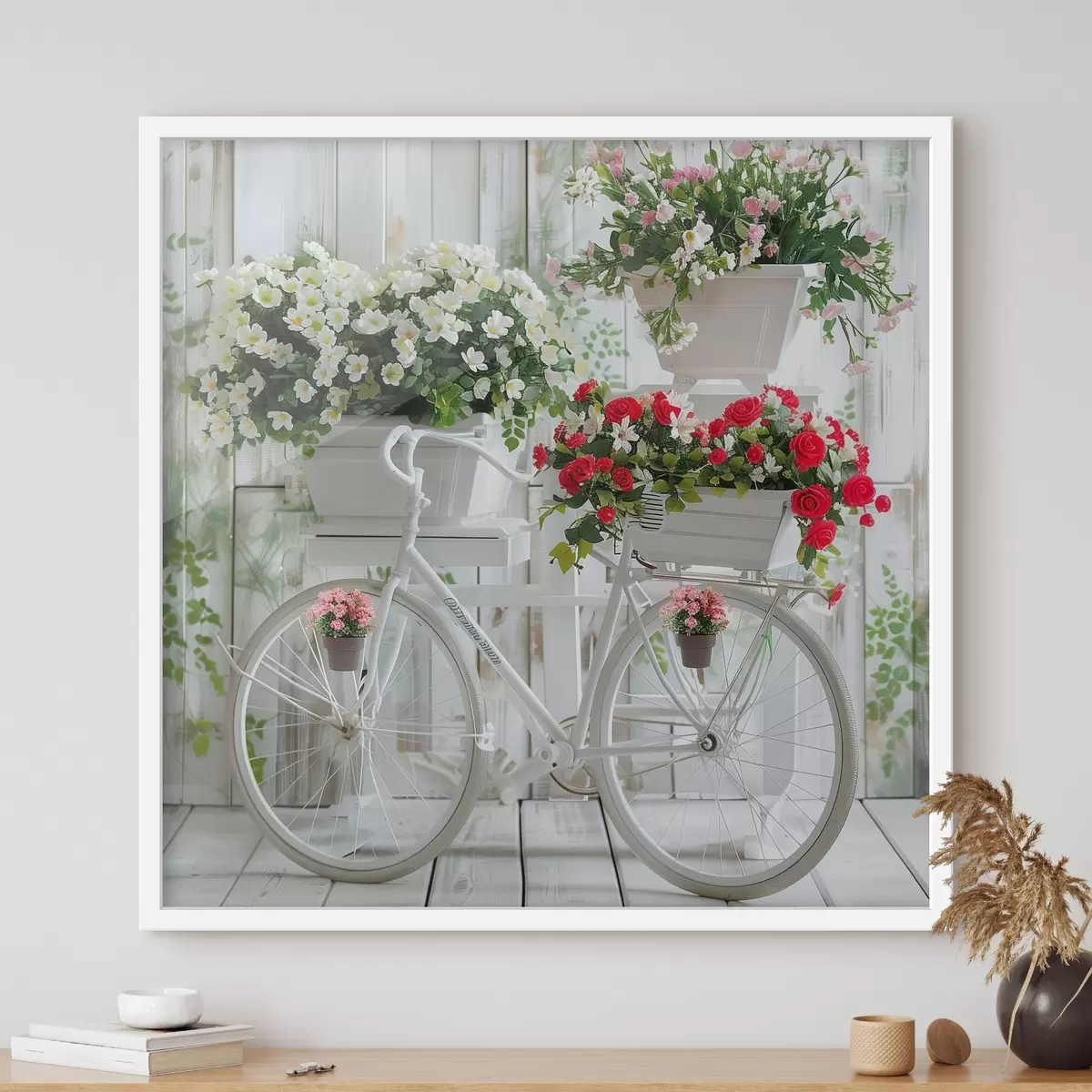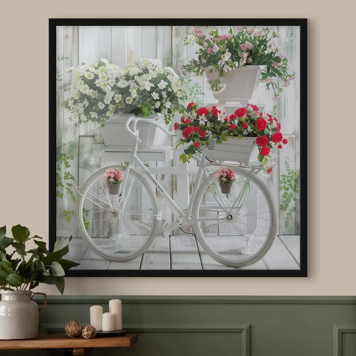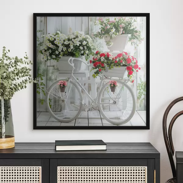 Poster Fahrrad und Blumenkorb im provenzalischen Stil f39242