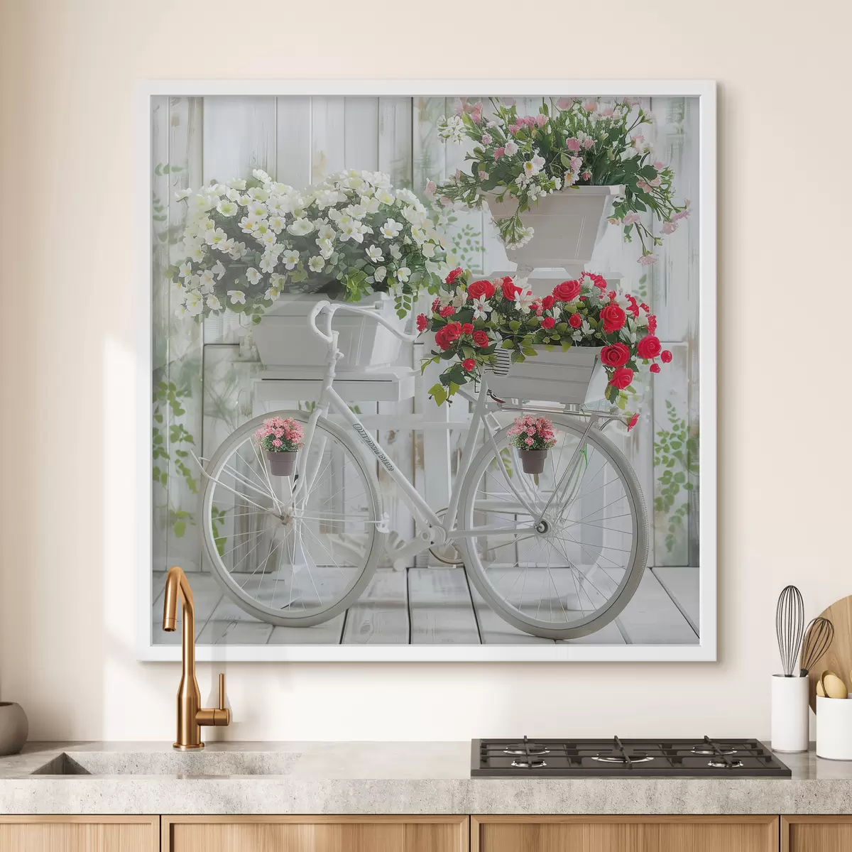 Poster Fahrrad und Blumenkorb im provenzalischen Stil Nr f39242