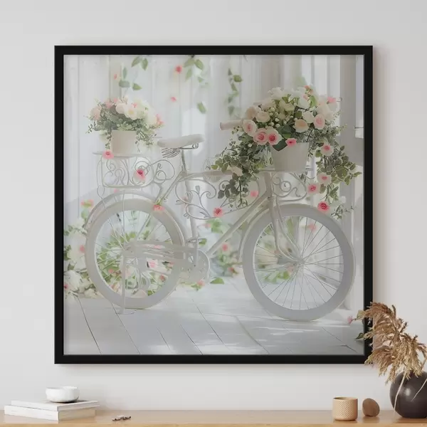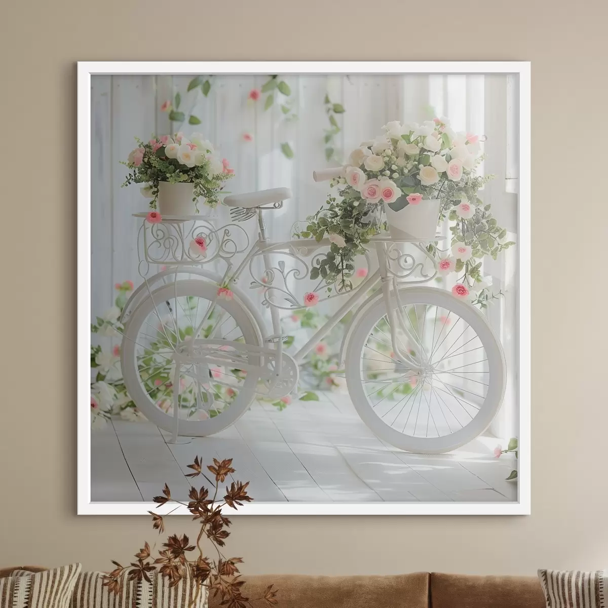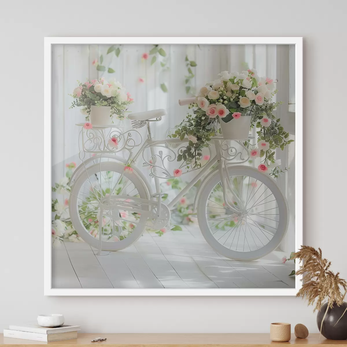 Poster Weißes Fahrrad mit einem Korb voller Blumen im provenzalischen Stil Nr f39243