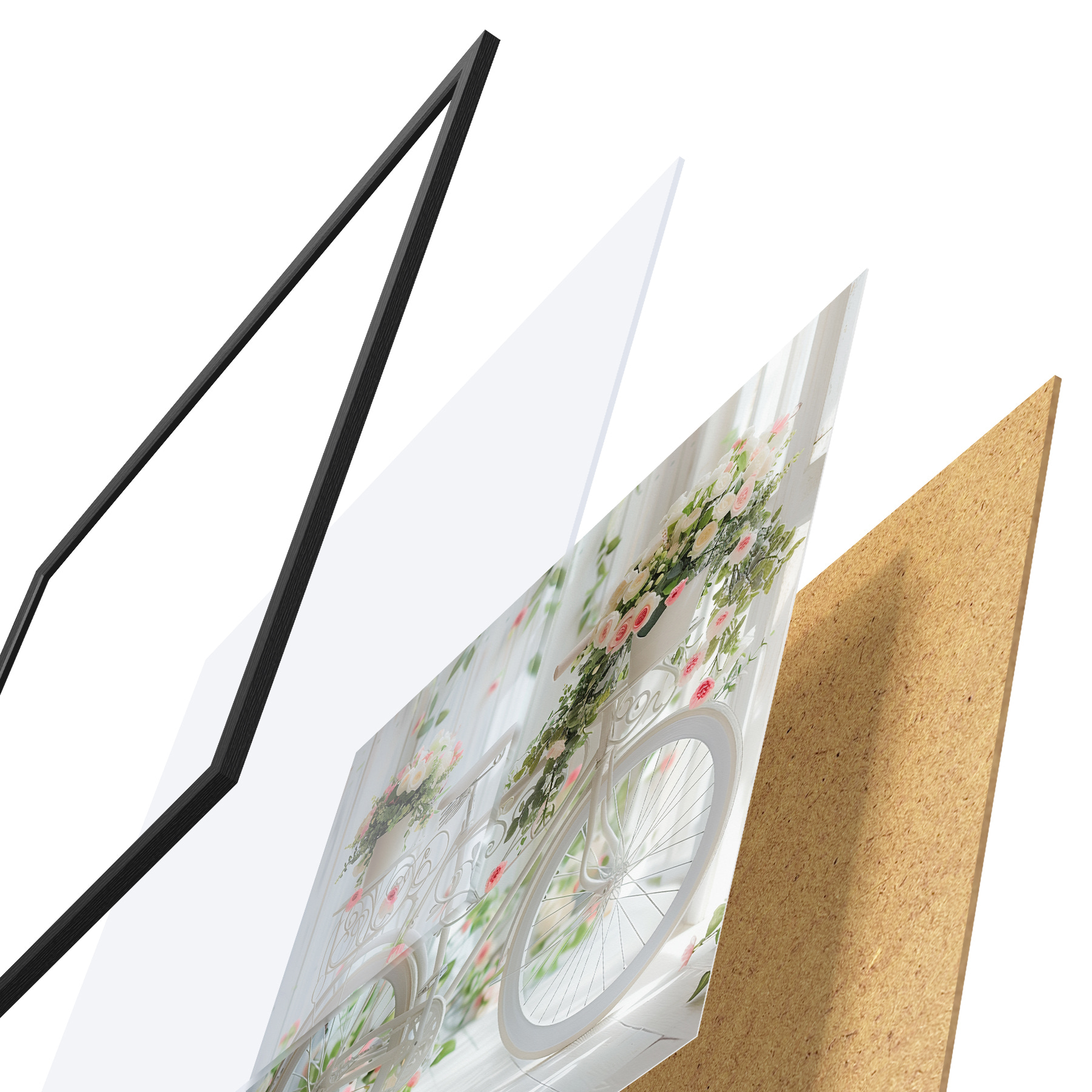 Das Poster besteht aus einem Rahmen, Plexiglas, einem gedruckten Bild und einer Rückwand aus Spanplatten. Dank der Halterungen auf der Rückseite kann das Poster sofort an die Wand gehängt werden.