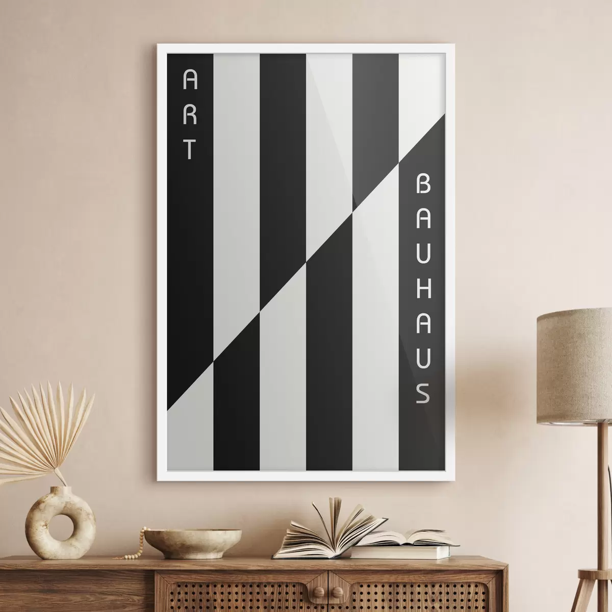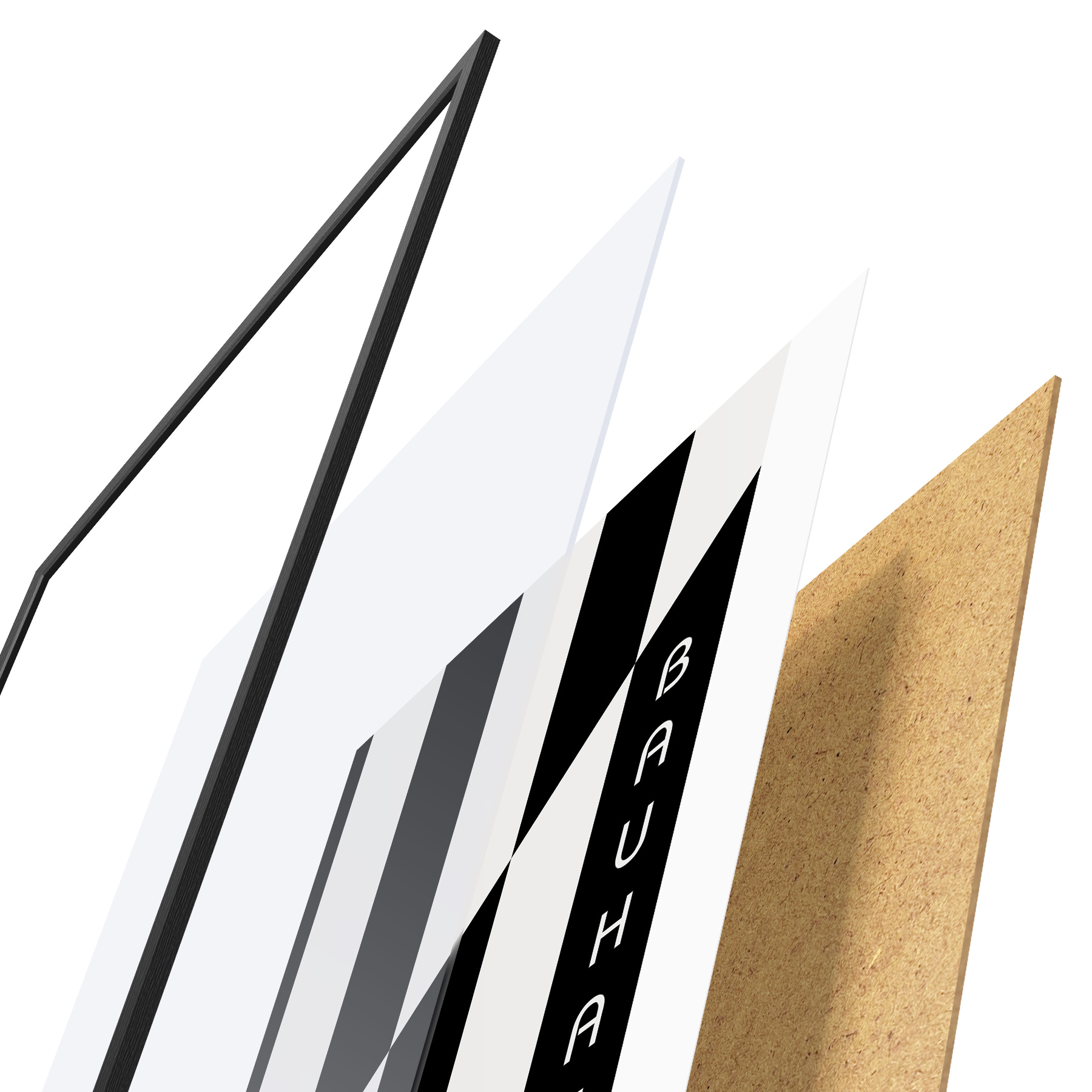 Das Poster besteht aus einem Rahmen, Plexiglas, einem gedruckten Bild und einer Rückwand aus Spanplatten. Dank der Halterungen auf der Rückseite kann das Poster sofort an die Wand gehängt werden.