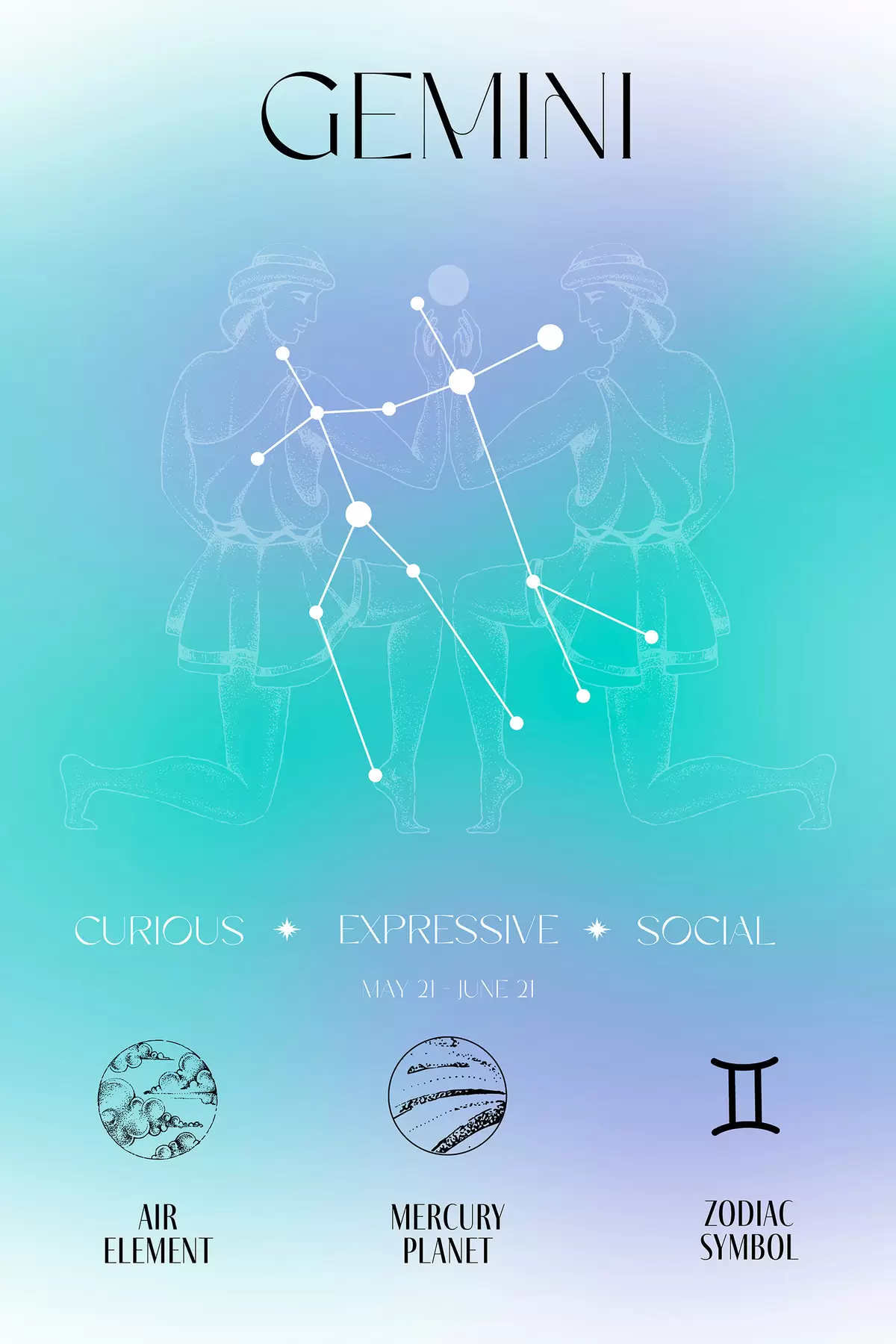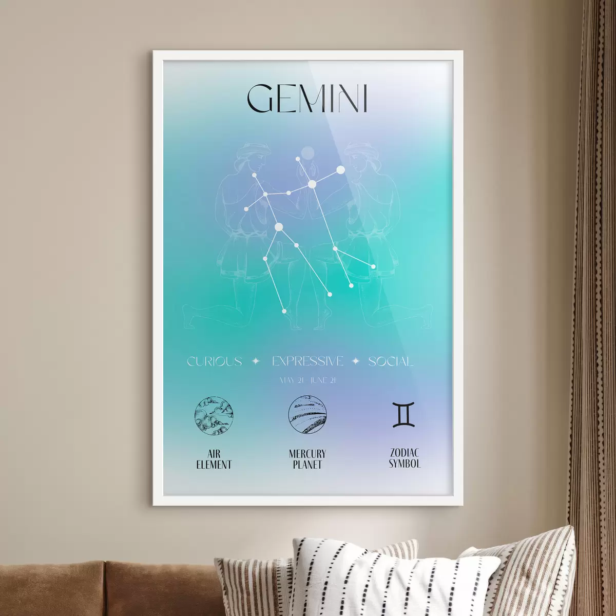 Poster Sternzeichen Zwillinge, Konstellationen, Kosmos, Planeten, Astrologie, blaue und violette Farben Nr f39279