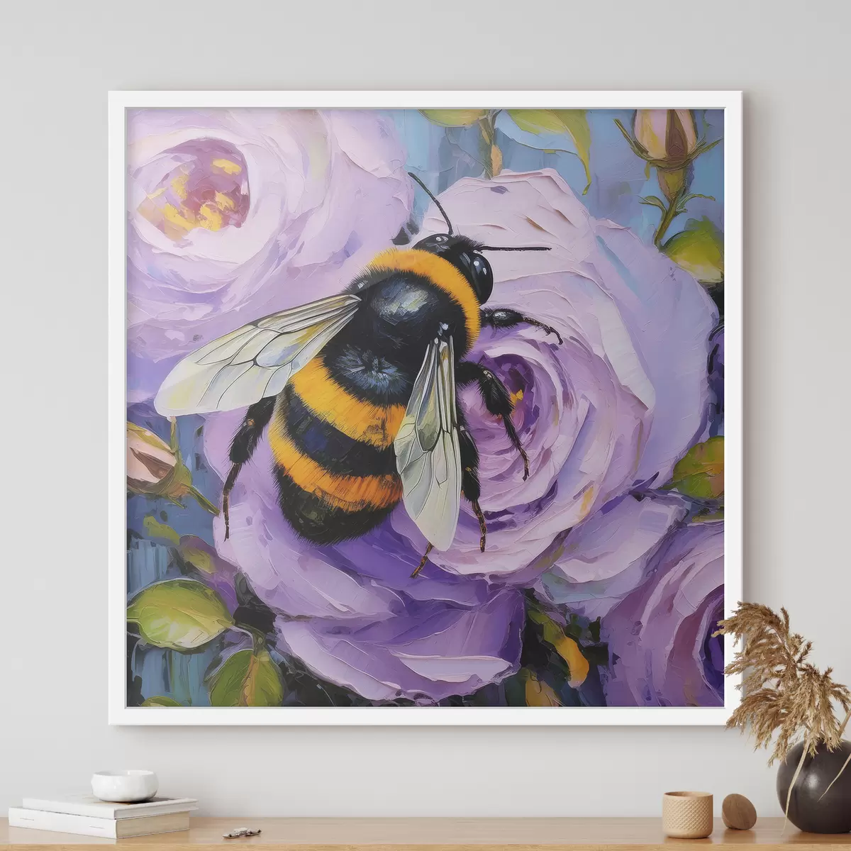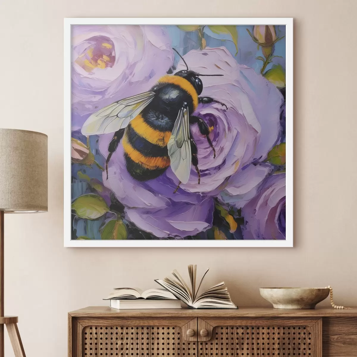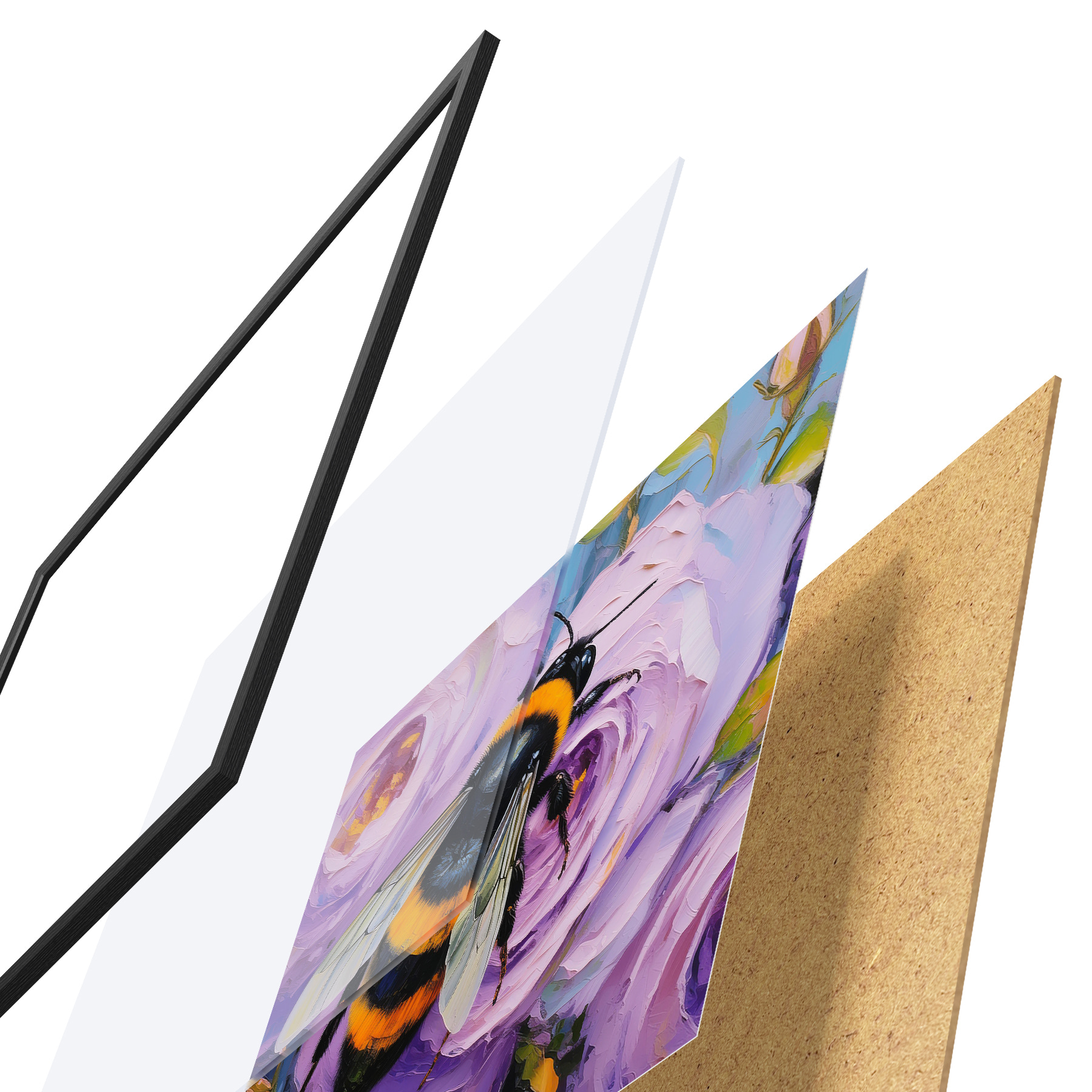 Poster Biene auf rosa Pfingstrosen, Sommerblumen, Ölgemälde, lebhafte Pinselstriche Nr f39410