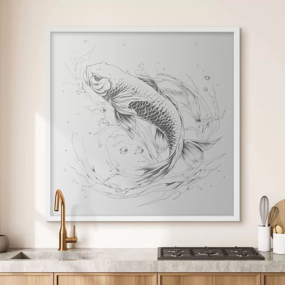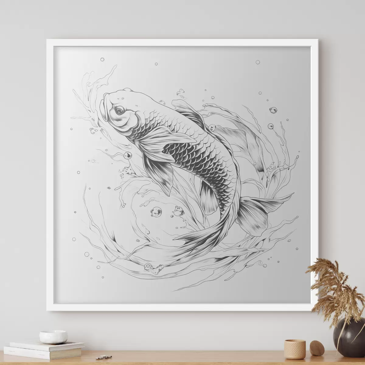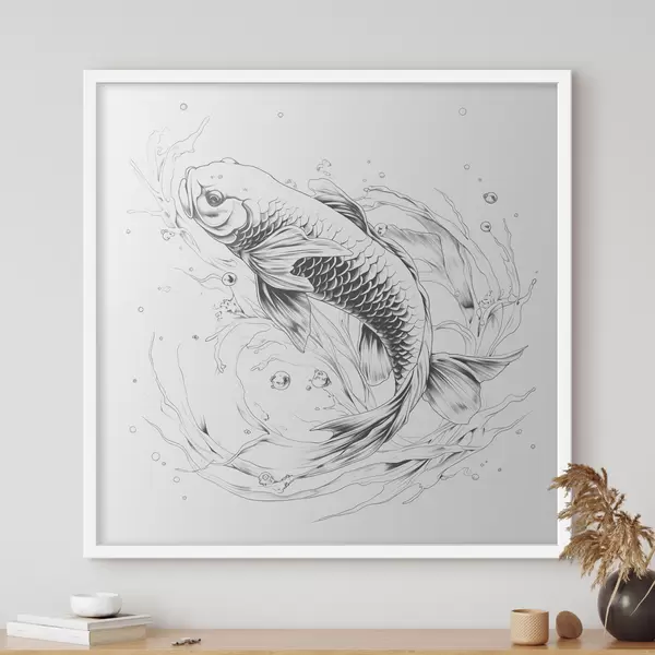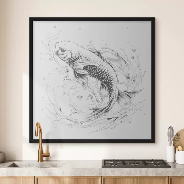 Poster Monochrome Strichzeichnung von Koi-Fischen Nr f39433